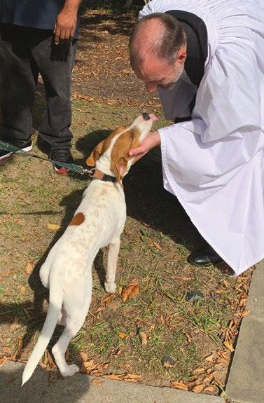 The annual Blessing of the Animals service took place Sunday afternoon, October 3. While most of the animals the clergy meet at this service are dogs and cats, with a few gerbils, rabbits or guinea pigs, we had an unusual visitor this year: a duck. Larry Bidwell of the parish staff brought his two dogs, and Larry’s girlfriend brought a rescue duck, Philomena.
