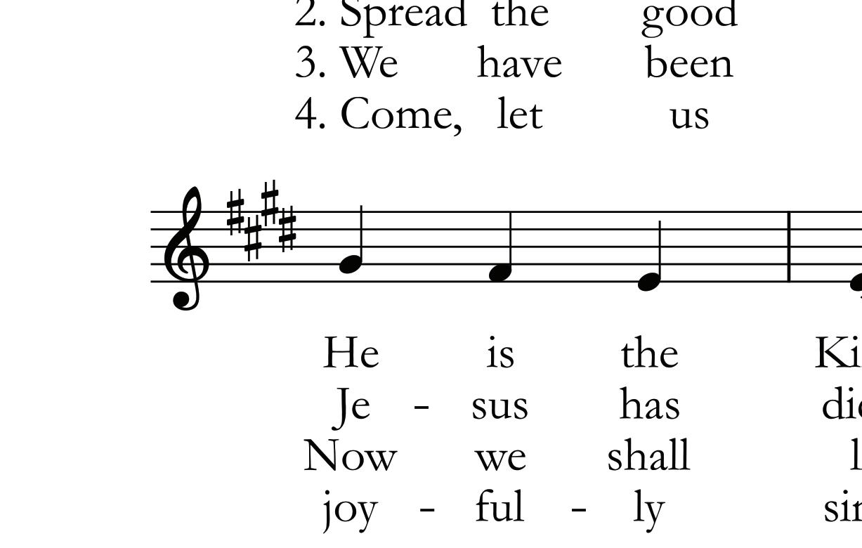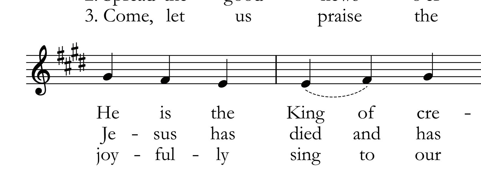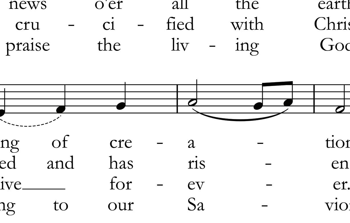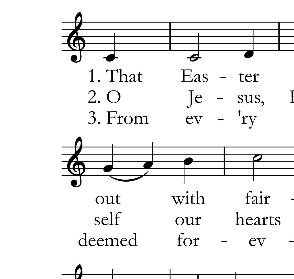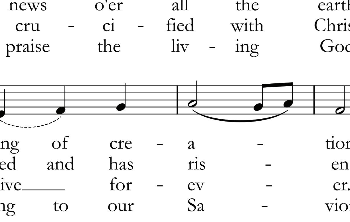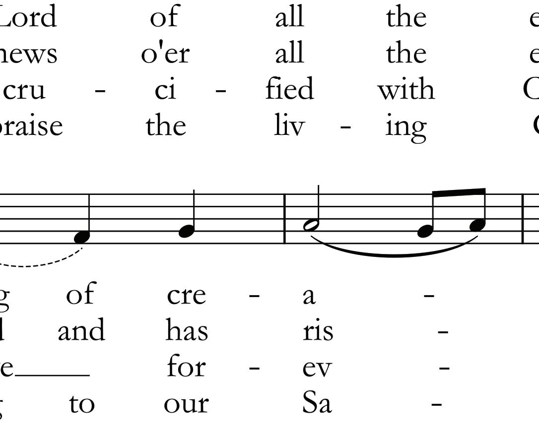 Song of Praise God’s Paschal Lamb is sacrificed for us Sung by all, standing as you are able. Sine Nomine