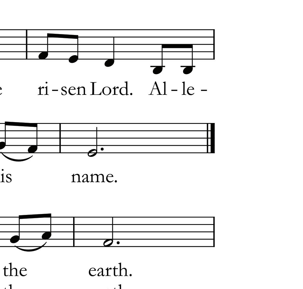 Opening Acclamation The Book of Common Prayer, page 323 Celebrant Alleluia. Christ is risen. People The Lord is risen indeed. Alleluia.