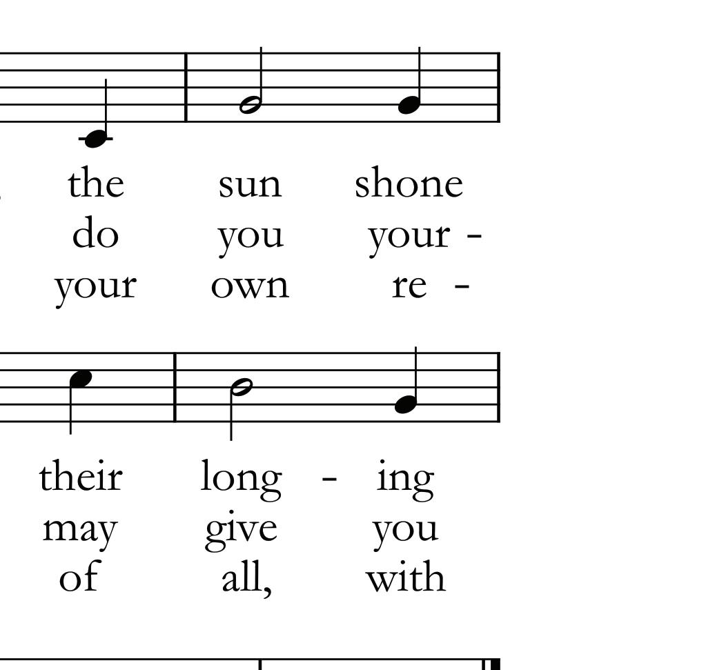 Sung by all, standing as you are able. Lasst uns erfreuen