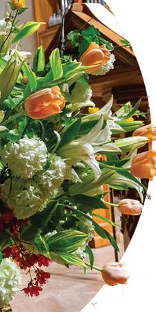 The flowers and greenery in the Chapel of the Holy Spirit recalling the Garden of Gethsemane were given in loving memory of William B. Armstrong by his family.