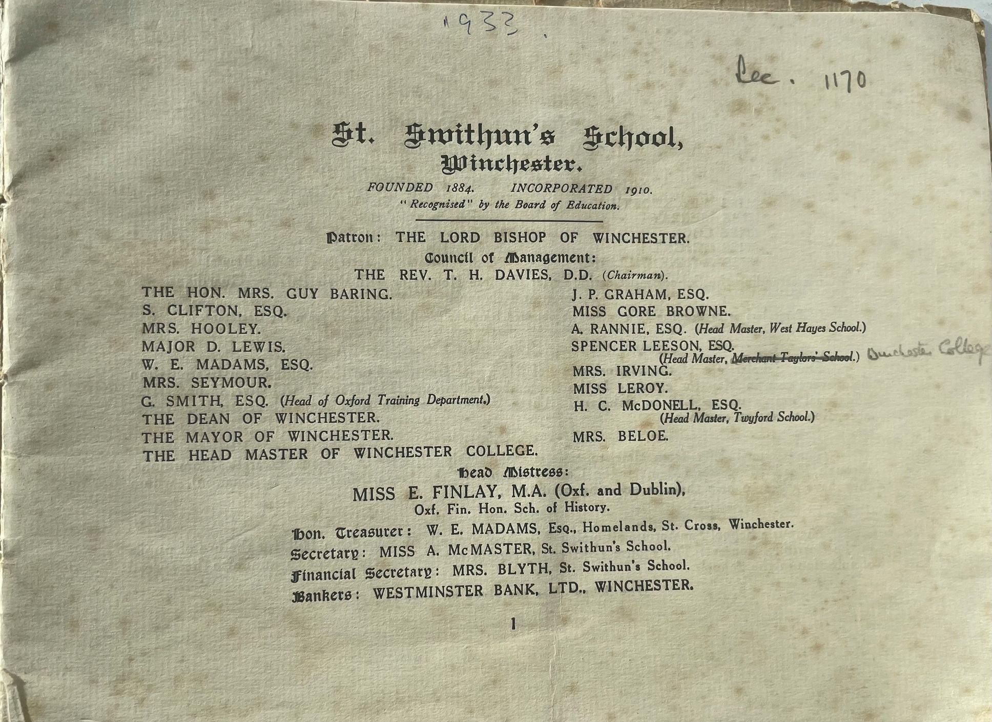 St Swithun's prospectus from the 1930's