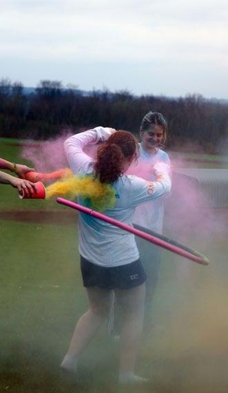 One of the main events during Fundraising Thursday was the colour run, complete with a bouncy castle and obstacle course. Sixth-form students were ready with handfuls of brightly coloured powder as the girls made their way through the course, and everyone thoroughly enjoyed it.
