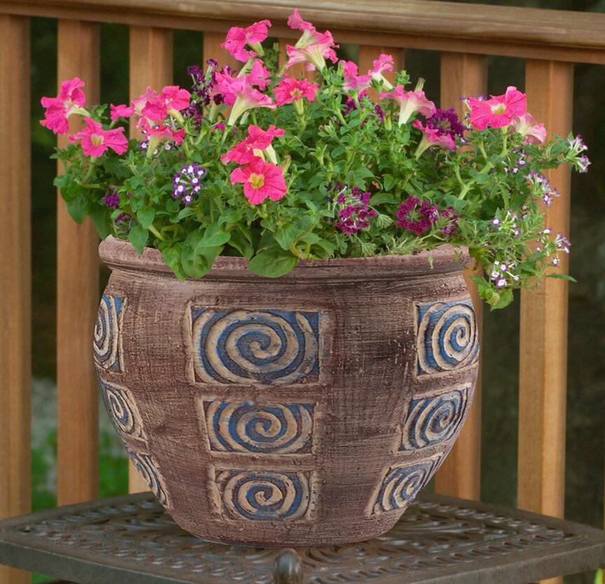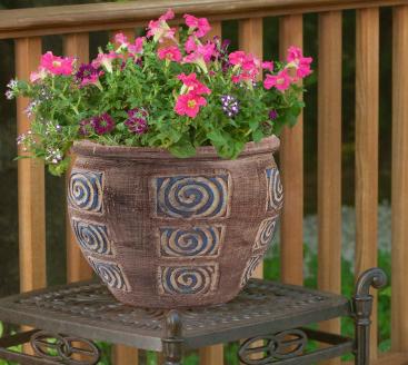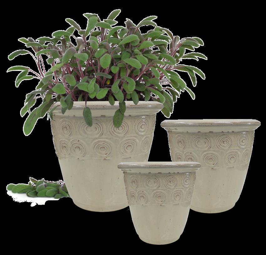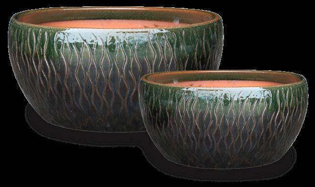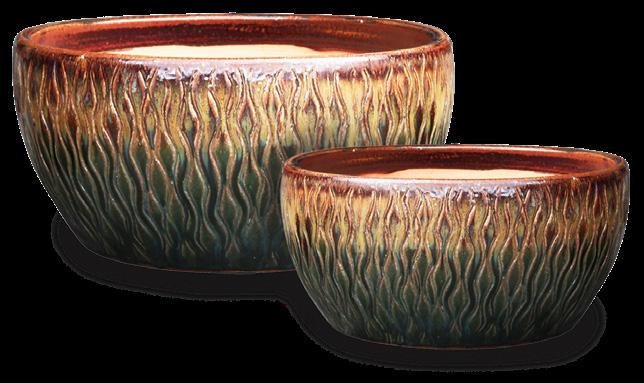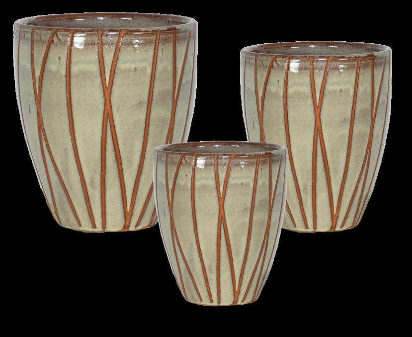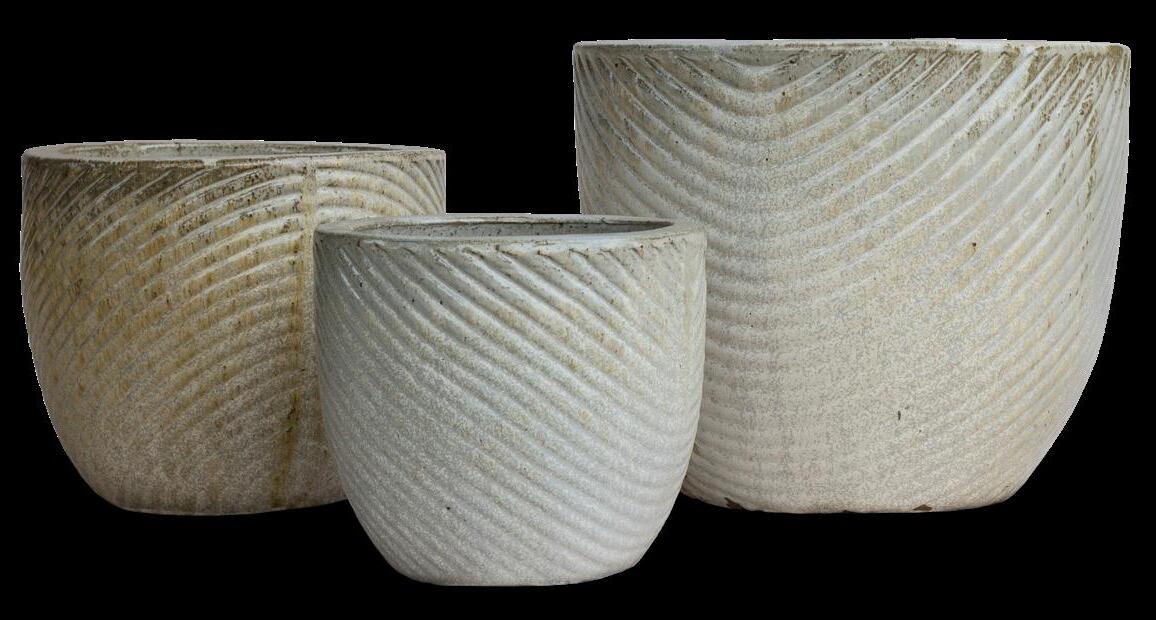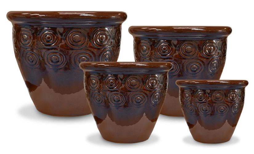 Perfectly sized for placement on porches and patios, our new collection of Whirly Ipoh pots features hand-etched spiral patterns beneath on-trend muted earth-toned glazes. The understated whimsy of these planters is a perfect compliment to a wide variety of flowers and foliage.