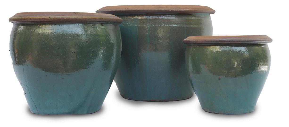 Vietnamese pottery is famed for its “falling” glazes. This signature look is achieved by thickly applying the glazes to the pots, and then firing them to extraordinary temperatures in wood-burning kilns. At the height of the firing, the glazes become liquid, and drip and run over the surfaces of the pots, creating the unpredictable color “breaks” that are the hallmark of this style.