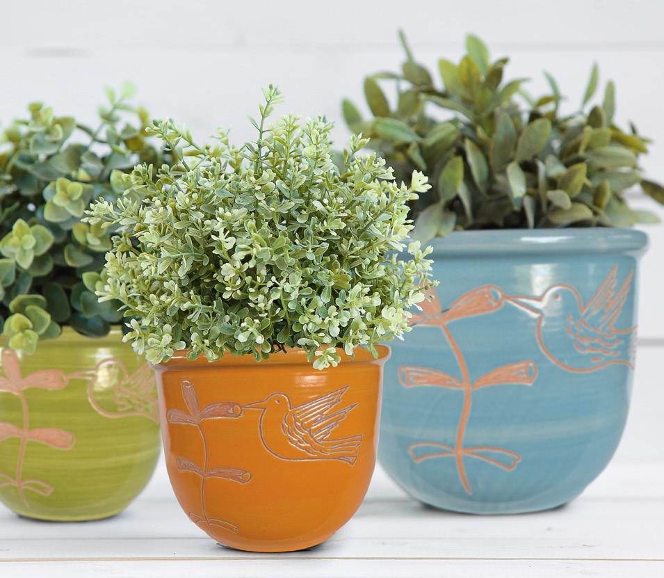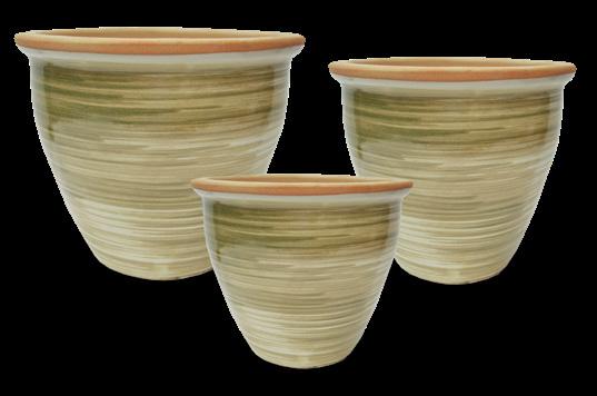 All pots are equipped with drainage holes All pots are crafted from durable stoneware clay Pots have unglazed rims.
