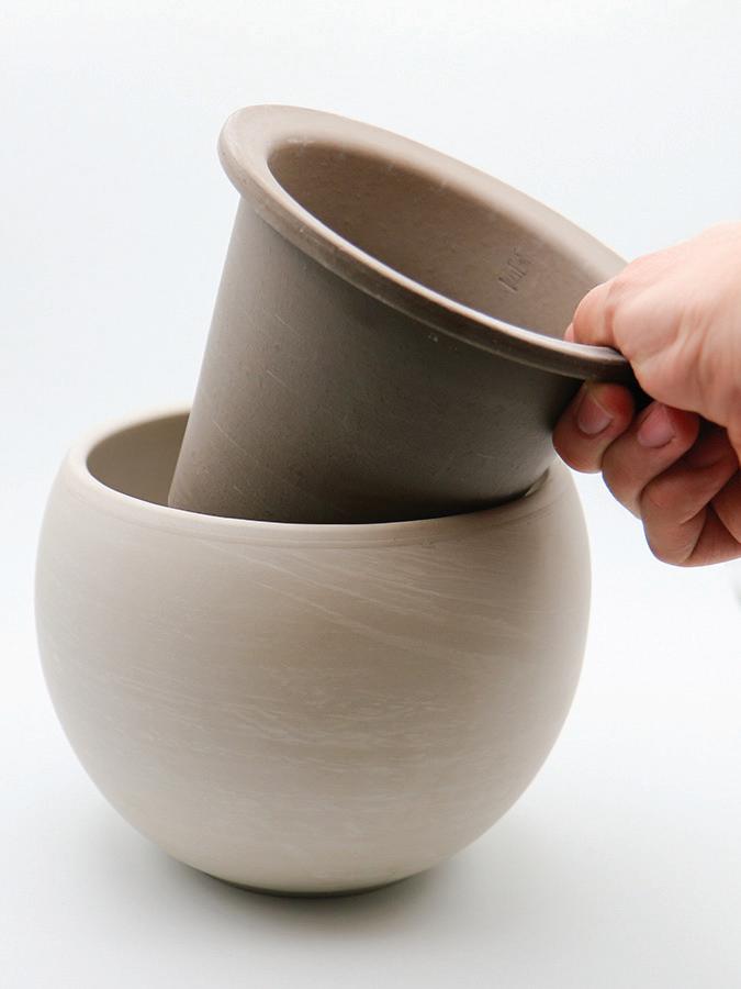 The white granite upholds the quality standards of our German clay utilizing only natural resources without any added ingredients, producing a color range from subtle white to smooth latte and pigment to the center of the pot.