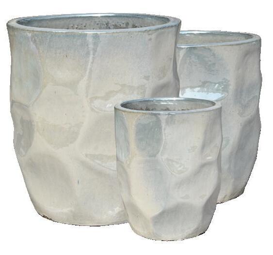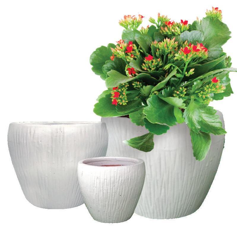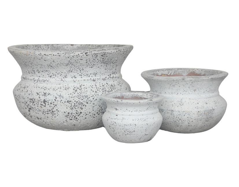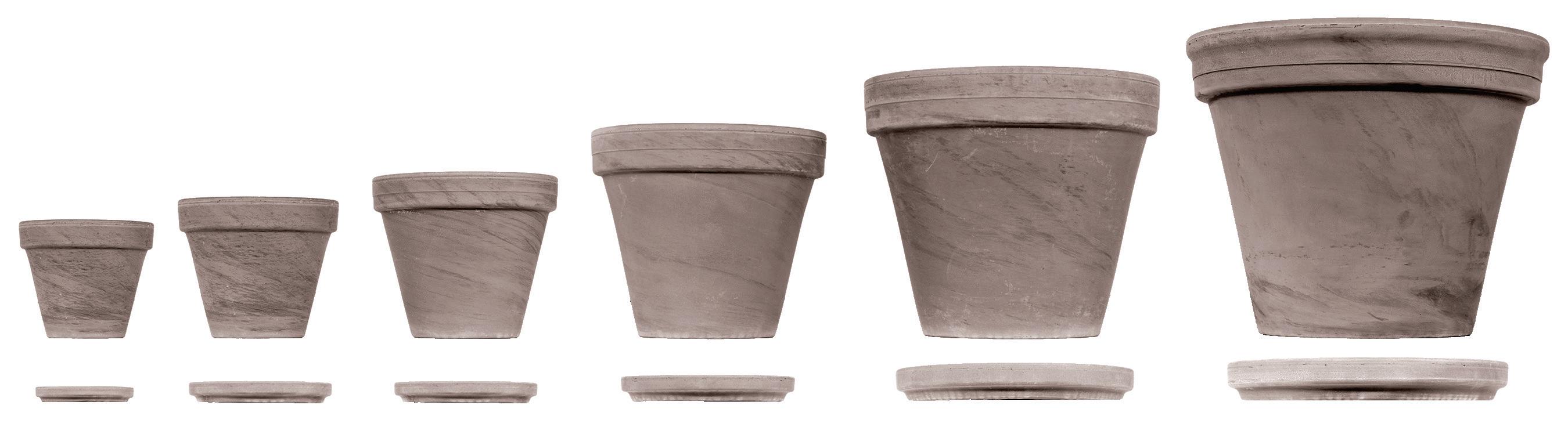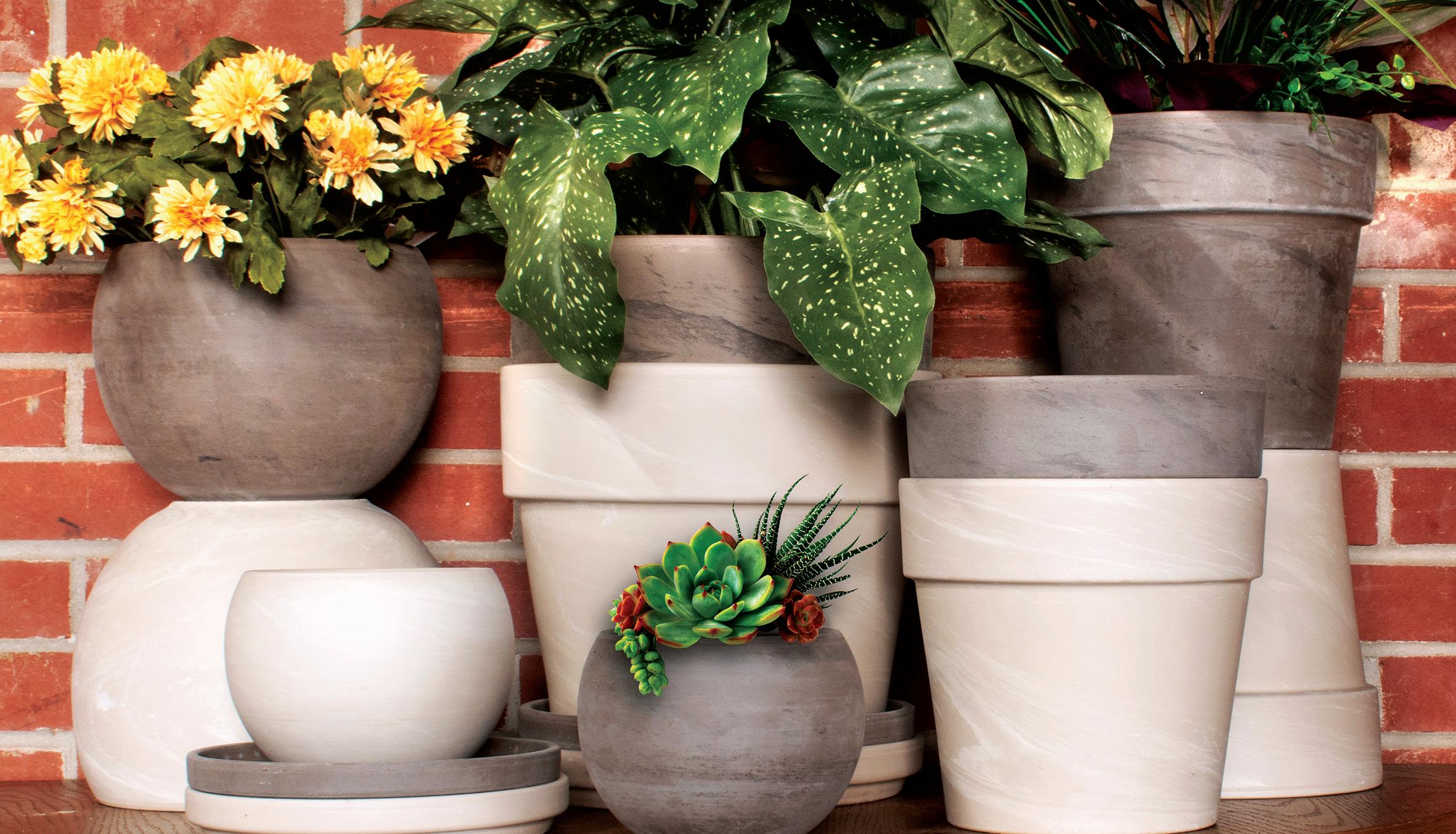 The gorgeous marbling swirls across the notably thin-walled planters give a porcelain-like look and touch! White granite provides the perfect contrast to our dark basalt while complementing the pop of color from our traditional red clay. Saucers are sold separately. Item numbers included in the chart for coordinating saucers.
