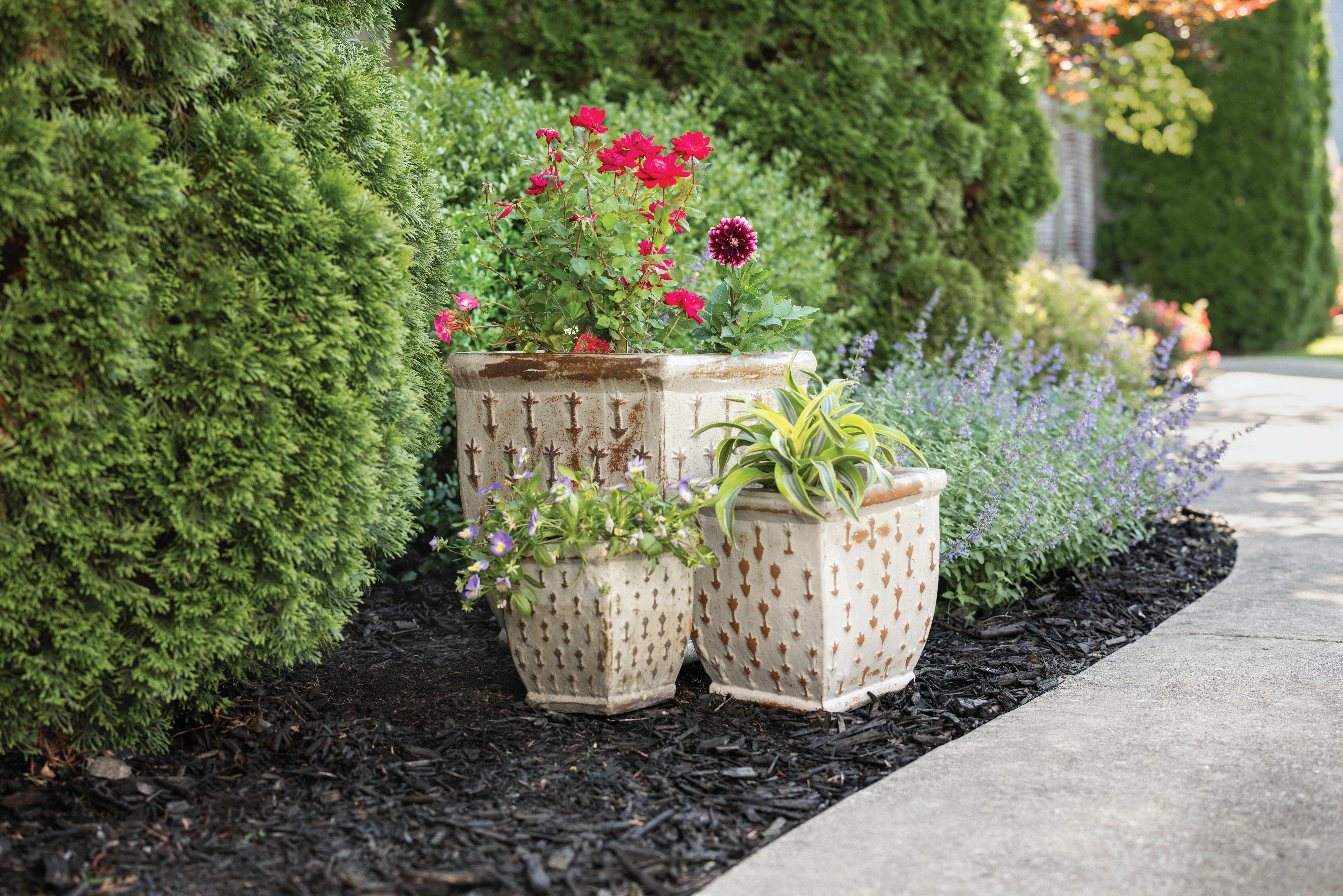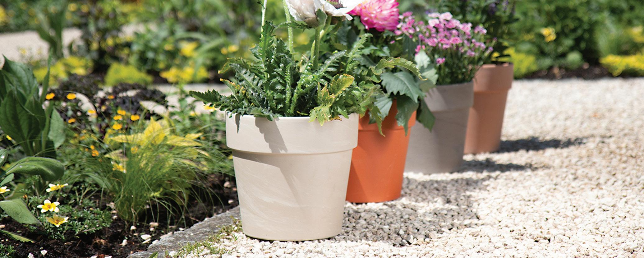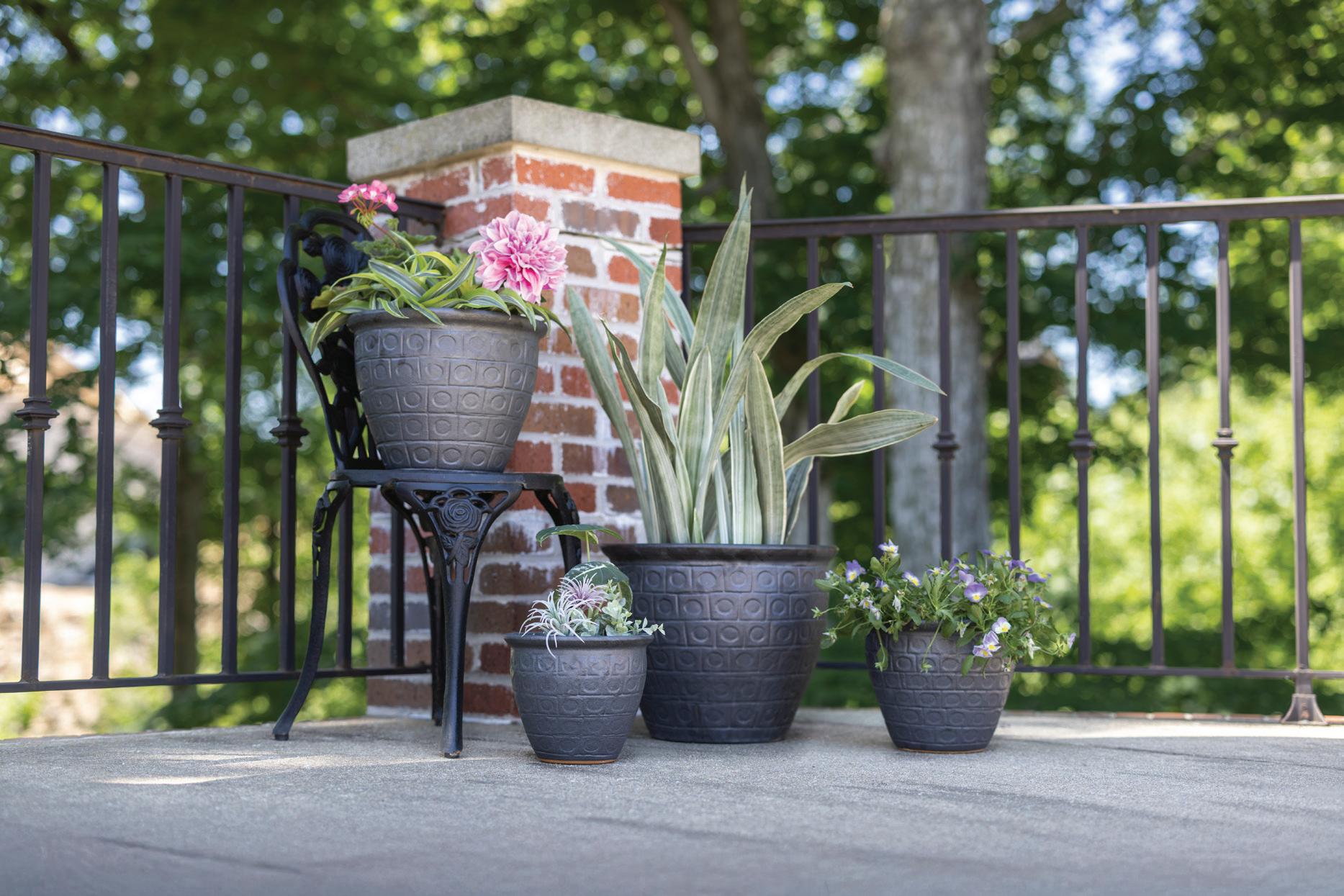 The gorgeous marbling swirls across the notably thin-walled planters give a porcelain-like look and touch! White granite provides the perfect contrast to our dark basalt while complementing the pop of color from our traditional red clay. Saucers are sold separately. Item numbers included in the chart for coordinating saucers.