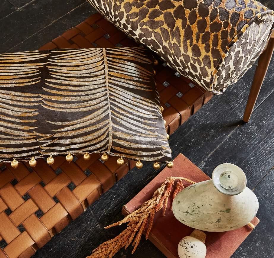 Tropical and luxury go hand-in-hand in the Echo Collection. Allow yourself to be transported through lush rainforests with the collection’s maximalist depictions of exotic flora and fauna. Opulent jacquards remain the stars of the show, featuring two-tone palm leaves and tactile geometric designs presenting a subtle sheen. Suitable for upholstery, the collection’s iridescent velvet showcases a striking animal print for entrancing focal points. A delicate, matt-finish palm embroidery provides a welcome contrast against prevalent hints of metallic, with a palette spanning opulent jewel tones, amber and midnight hues anchoring Echo’s tropical take on grandeur.