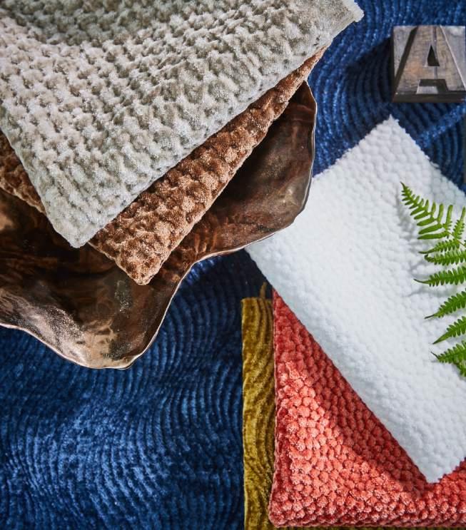 Artis.tic flair and beautiful formations remain central to the Sculpt Collection. Inspired by the work of famous sculpture artists, a trio of textured chenilles showcase embossed finishes and intriguing 3D effects. Interest is created through a range of techniques, from dappled finishes reminiscent of traditional stone carving to wave patterns imitating clay modelling. A bank of rich jewel tones emphasises the opulence of Sculpt. On-trend shades of deep brown, warming ambers and verdant greens are just snippets of the collection’s palette, which amplifies the interest of every technique