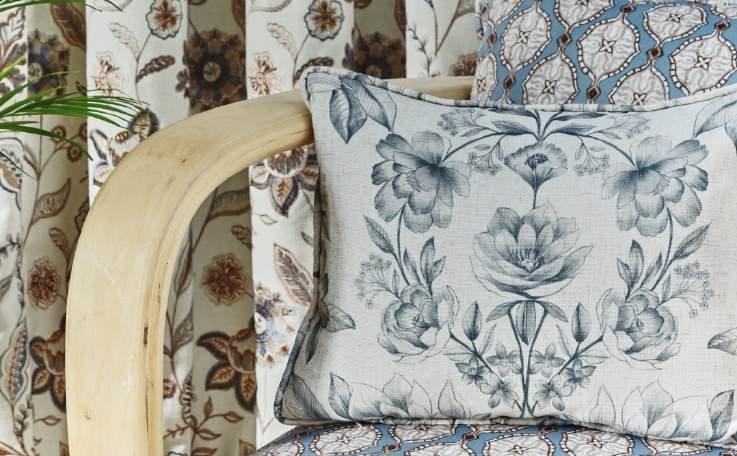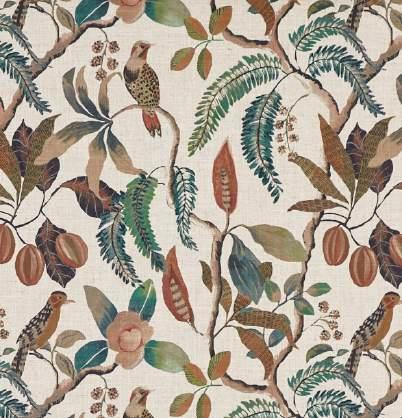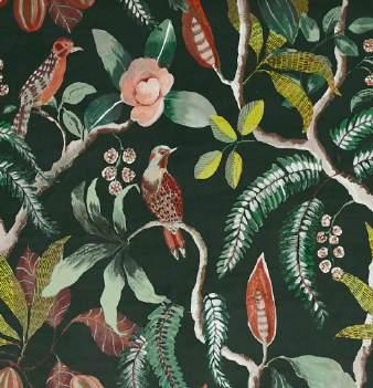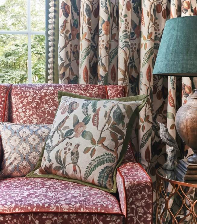 Reflecting the grandeur of the British Colonial style, Summer Renaissance has been inspired by visits to regal settings found within vibrant destinations. The collection’s tropical influences shine through in its o rnate botanical prints, with an elegant, trailing bird design hinting at the adventure to come. A curation of small-scale prints, featuring ogee designs and complementary florals, infuse Summer Renaissance with contemporary touches. The addition of tactile velvets and embroideries replicates the luxurious texture found within grand estates. The collection’s trend-led colour bank spans contemporary teals and timeless greens, through to richer berry and navy colourways.