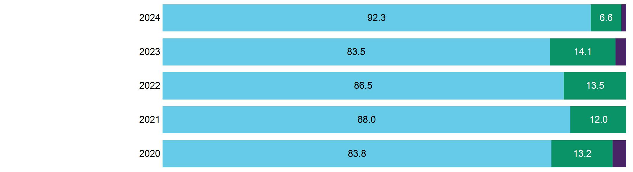 73 out of 91 Year 12 completers were in paid employment in 2024 This figure includes 6 who were only working and 67 who were both working and studying.