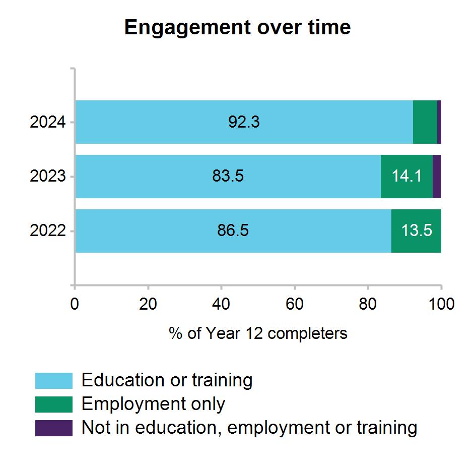 1 out of 91 Year 12 completers was not engaged in education, employment or training at the time of the survey.