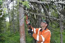 Den viktiga vägen Efter lunchen var det dags för nästa station vilken handlade om vägar. Vägar är en förut sättning för att såväl skogsägaren som Bespa ringsskogens egen personal och entreprenö rer ska ta sig fram i skogen. Bra underhållna vägar uppskattas även av dem som vill ta sig ut i markerna för fritidsaktiviteter som till exempel jakt, rekreation, bär- eller svamp plockning. Knut Eriksson som är vägansva rig för Särna-Idre har ett stort vägnät på när mare 600 kilometer att underhålla. Utan bra vägar skulle det vara svårt att bruka skogen rationellt. Det gäller såväl när planerarna ska ut i skogen, maskiner ska ta sig till en gall ring eller till en slutavverkning eller till en markberedning. Sedan ska plantörer ta sig ut för att plantera, skogsvårdarna ska röja och naturligtvis brukas även vägarna av de tunga transporterna som ska ta virket ut ur skogen. Alla dessa åtgärder kräver bra vägar och ett väl utbyggt vägnät. Med de dyra bränslepri serna idag är det mer aktuellt än någonsin att underhålla vägarna och bygga vägar där man på lång sikt kan tjäna på att bygga en ny vägsträcka, då gör man en så kallad båt nadsberäkning.