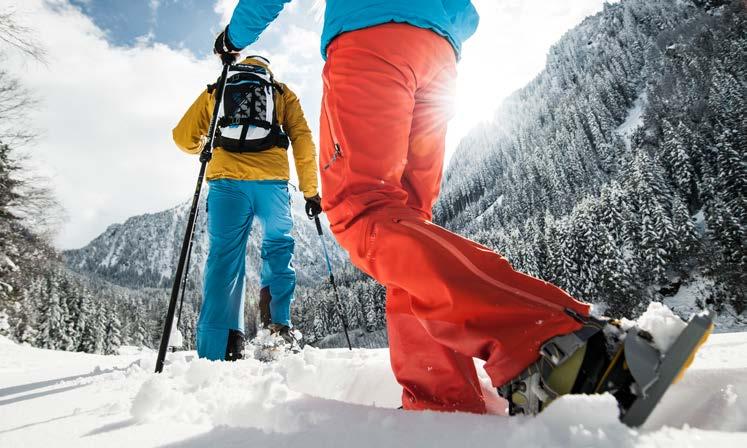Bist du schon einmal mit diesen lustigen Schneeschuhen an den Füßen durch das unberührte Weiß gestapft? Da sind ein paar Spuren im Schnee! War das wohl ein Hase? Oder doch ein Reh? Dein Atem kondensiert vor deinem Gesicht zu kleinen Wölkchen und der Ausblick ist einfach atemberaubend schön. Schneeschuhe kannst du dir eigentlich in fast jedem Skiverleih mieten. Das macht so viel Spaß!