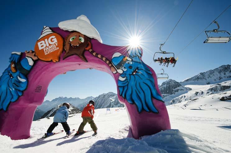 Echt spitze sind auch die mit dem „Quality Award“ ausgezeichneten BIG-Family-Ski schulen. Die Experten bringen dir ganz schnell die richtige Technik bei und machen dich so zum wahren Pistenflitzer. Auf geht’s! Optima le Bedingungen für Groß und Klein versprechen außerdem die qualitätsgeprüften Familien skigebiete Schlick 2000 und der Stubaier Glet scher.