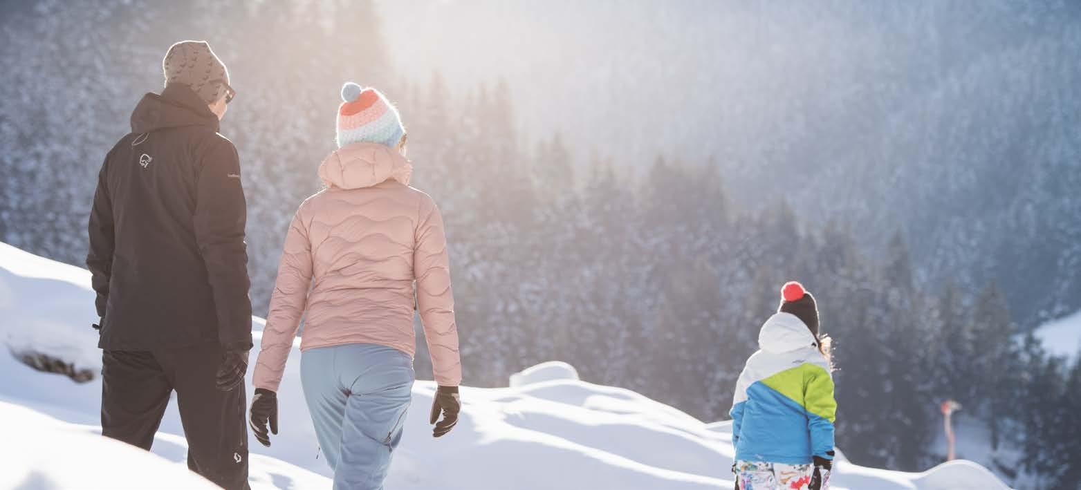 Bist du schon einmal mit diesen lustigen Schneeschuhen an den Füßen durch das unberührte Weiß gestapft? Da sind ein paar Spuren im Schnee! War das wohl ein Hase? Oder doch ein Reh? Dein Atem kondensiert vor deinem Gesicht zu kleinen Wölkchen und der Ausblick ist einfach atemberaubend schön.