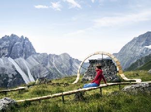 Horská stanice Kreuzjoch - vyhlídková plošina „StubaiBlick“// Doba chůze: 30 min. Panoramatická stezka je ideální pro rodiny s dětmi a seniory a vede pohodlně na vyhlídkovou plošinu „StubaiBlick“ s neobvyklým posezením navrženým umělci.