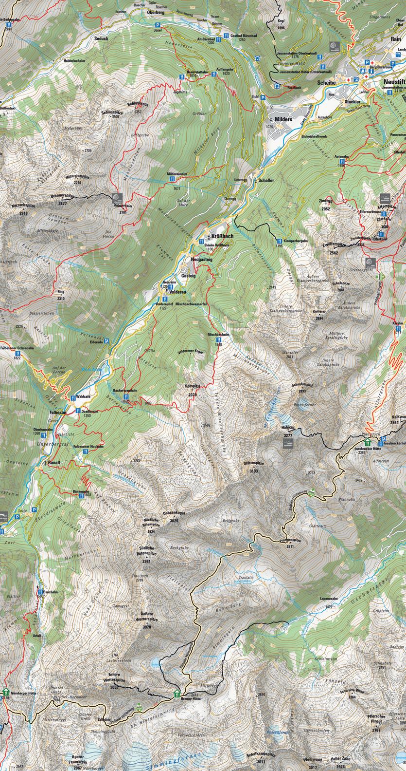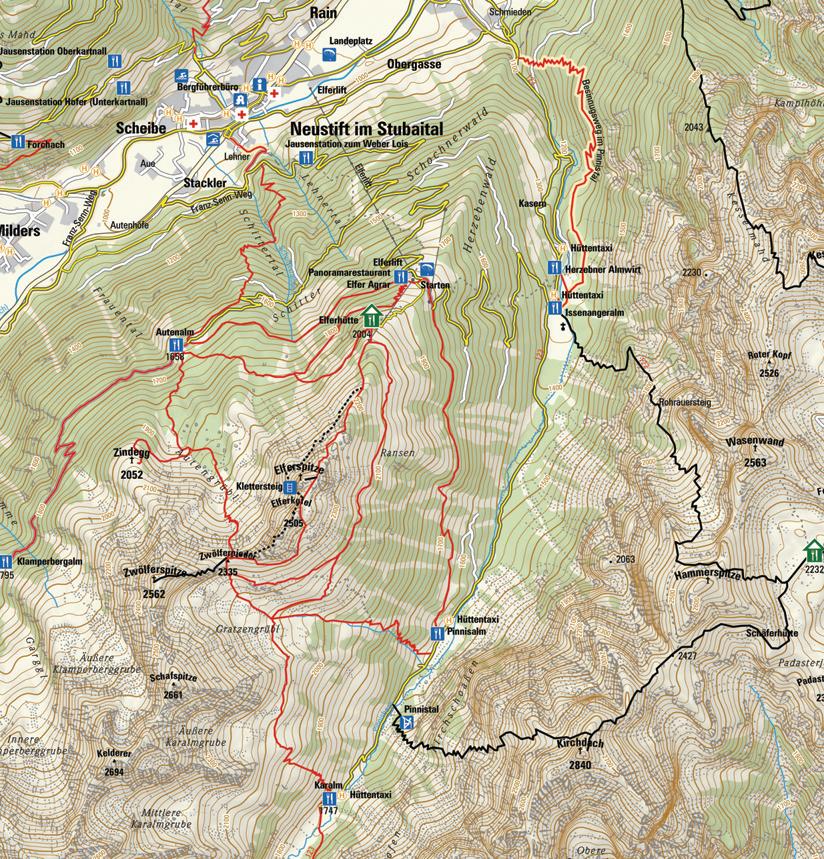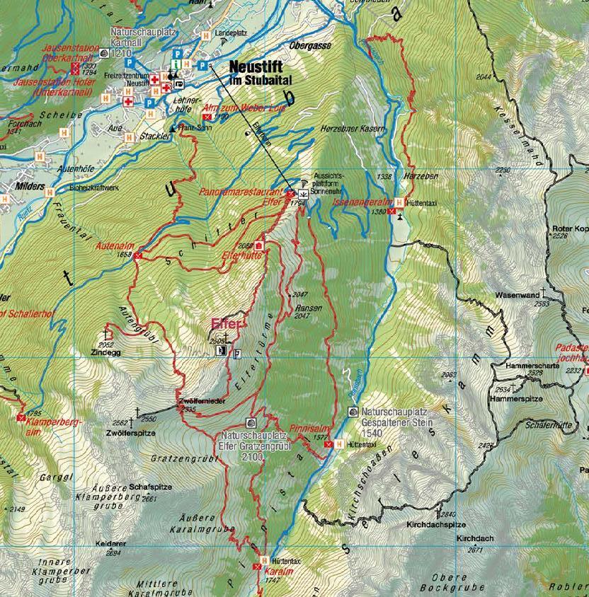 De openingstijden zijn van het weer en de temperatuur afhankelijk. Een lijst met geopende hutten en almen is op www.stubai.at te zien en kan worden gedownload en in de VVV bureau worden meegenomen. Reservering verplicht voor overnachtingen in hutten en almen. Kaart zie bladzijde 3 - 5.