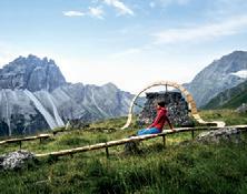 Salendo attraverso il paesino di Telfes verso la frazione Kapfers e fermandosi sulla destra si raggiunge il piccolo parcheggio dopo le ultime case. Seguendo la segnaletica si incontrano molti larici e, dopo solo 15 minuti, si arriva allo spettacolo della natura “Telfen Wiesen“, dove si può fare una piacevole sosta sdraiandosi sui lettini della grande piattaforma oppure all’ombra degli alberi.