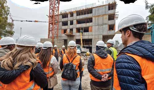 Građevinci su gradilište posjetili prvi, predvođeni prof. dr. sc. Elvedinom Bečićem te asistentima Željkom Trifkovićem i Amerom Mešićem. Nakon njihovog povratka, studenti arhitekture i sigurnosti i zaštite na radu su se uputili na gradilište, predvođeni istom ekipom uz pojačanje profesora Muharema Čupine. Po dolasku na gradilište, studentima je predstavljeno gradilište kao jedan vid funkcionalnog organizma, gdje je organizacija ključ uspjeha. Svaka radnja koja se odvija na gradilištu mora imati svoju unaprijed pripremljenu ideju, opravdan uzrok i očekivan ishod. Svaki radnik na gradilištu mora znati opis svog posla i mora razumjeti plan gradnje za svaki dan koji provede na gradilištu. Da bi se predviđeni posao odradio kvalitetno, najbitnija je produktivna konsultacija, iz prostog razloga što dvije glave vide bolje od jedne.