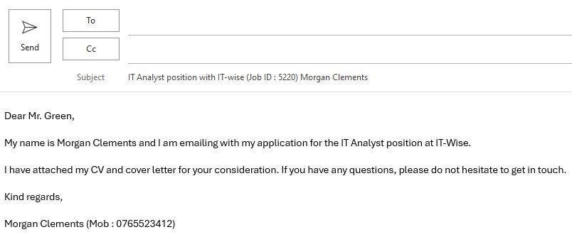 • In the email itself, write a short paragraph stating who you are, the job you are applying for and the documents you have attached.