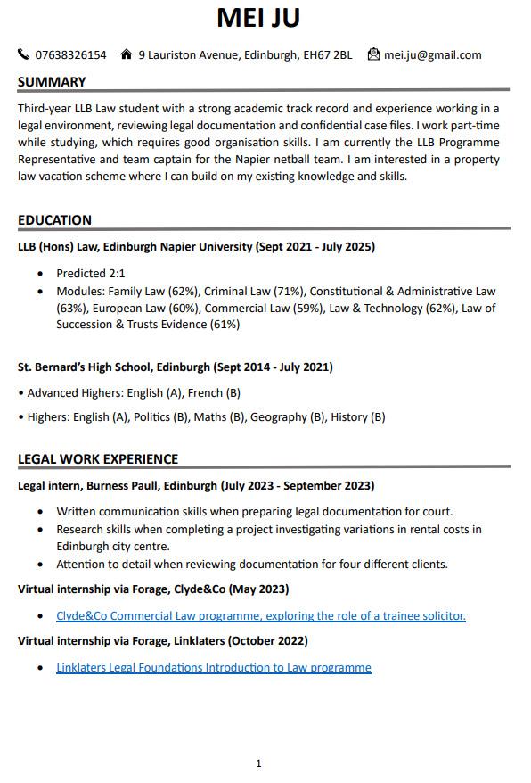 Legal Intern, Lothian Solicitors, Edinburgh (July 2023 - September 2023)