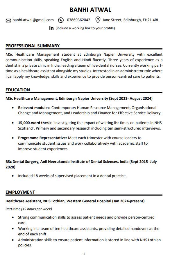 This guide created by Career Development Consultants at Edinburgh Napier University aims to support you in writing a CV and cover letter. Whether this is your first time writing a CV and cover letter or if you simply need some inspiration, this guide is for you. You can also book a careers appointment with a Career Development Consultant to discuss your CV and cover letter. Find out more about the types of appointments and how to book on MyNapier.
