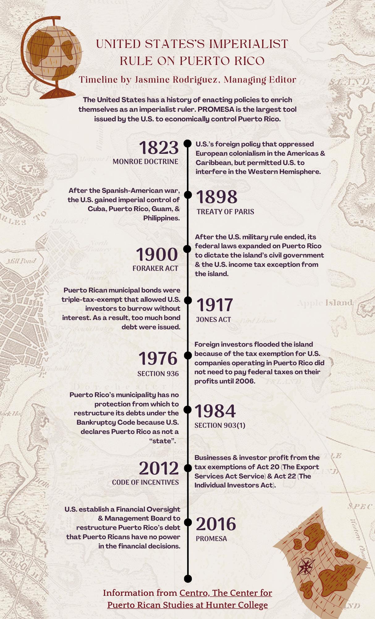 Xavier Morales-Greene (He/Him) Head of Que Ondee Sola Jasmine Rodriguez (She/Her) Managing Editor Crystal Lynn Pérez (She/Her) Writer Jesus Robles (He/Him) Head of Visual Art Department Clay Cofre (They/He) Writer/Visual Artist Logan Leflore (He/Him) Vistual Artist Dennis Sagel (He/Him) Student Media coordintor Sophia Ruiz (They/She) WriterThis article is an edited excerpt from an undergraduate thesis completed in December of 2019. The broad purpose was to look at Puerto Rican history through a largely unique lens: the International Criminal Court (ICC) and the adjudication of possible crimes against humanity committed in Puerto Rico by the United States. Since then, much has transpired in Puerto Rico, but little of what has developed is good news as far as Puerto Rican sovereignty is concerned: the privatization of electric utilities, earthquakes complicating continued efforts to rebuild from devastating hurricanes, rampant political corruption exposed, universities hemorrhaging funding, and the decennial census revealing a rapidly decreasing population on the island. And that’s just what makes the headlines. There is much hope to be found, but the cause of Puerto Rican liberation can sometimes feel like it is on the proverbial ropes – a slow motion last-stand if you’re feeling pessimistic. Still, I cannot say I have given up, nor that we should. Instead, we continue to defiantly declare our love for our inheritance of waterfalls and sharks – as the poet Martín Espada would say. History is ours, we can make it, but first we must know it. This excerpt is focused on PROMESA and the crime of apartheid.