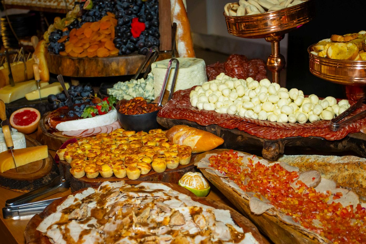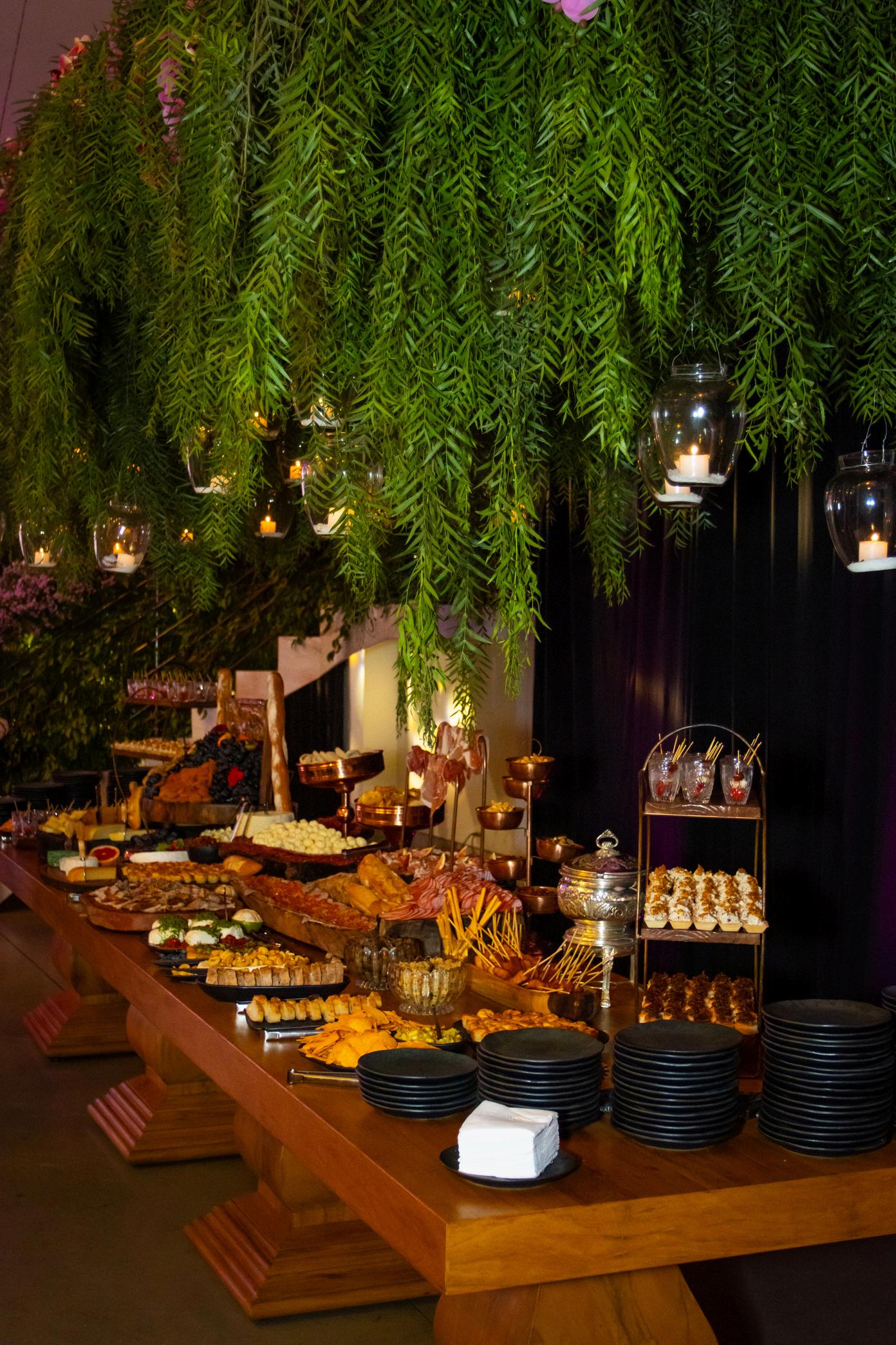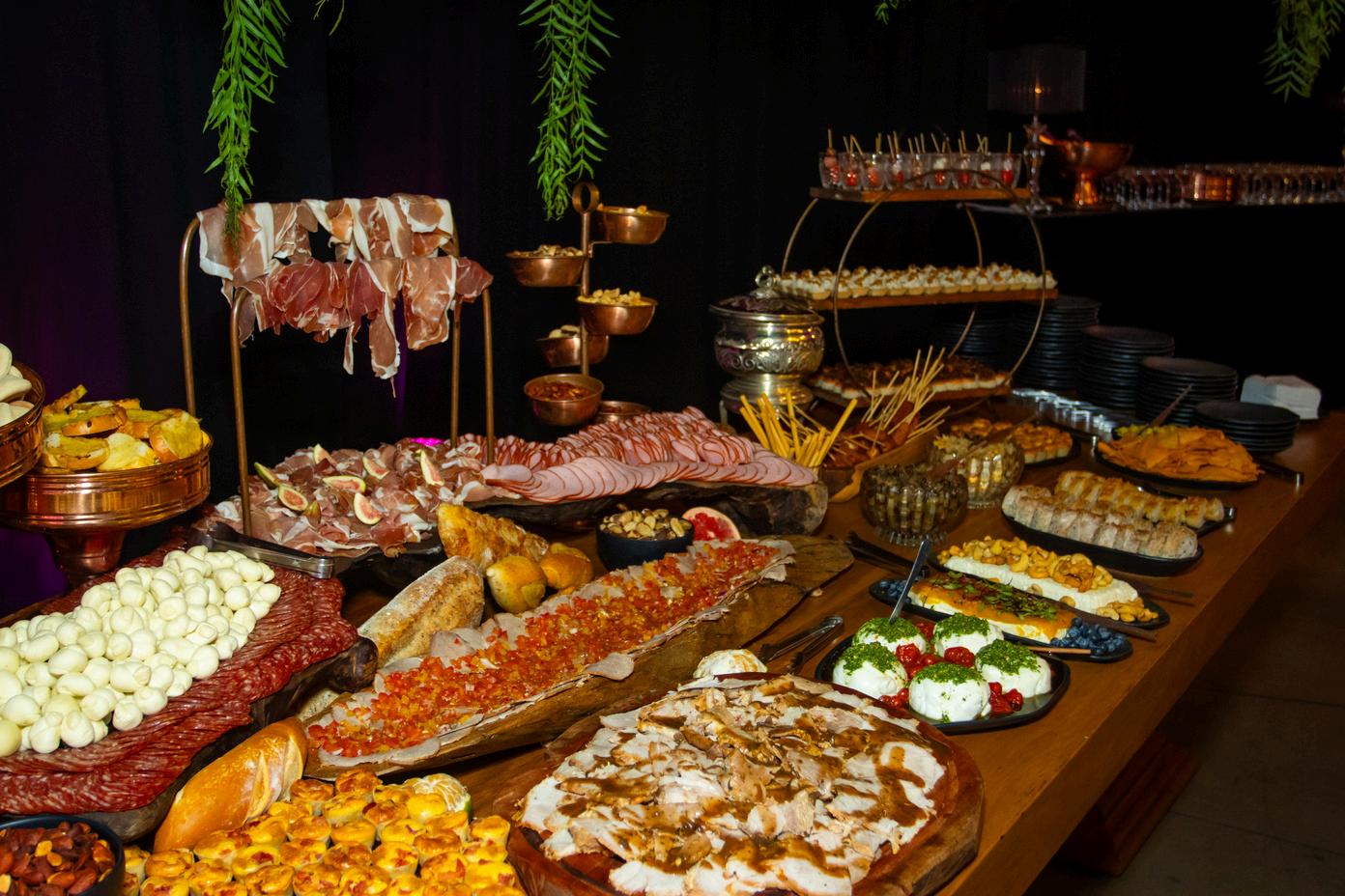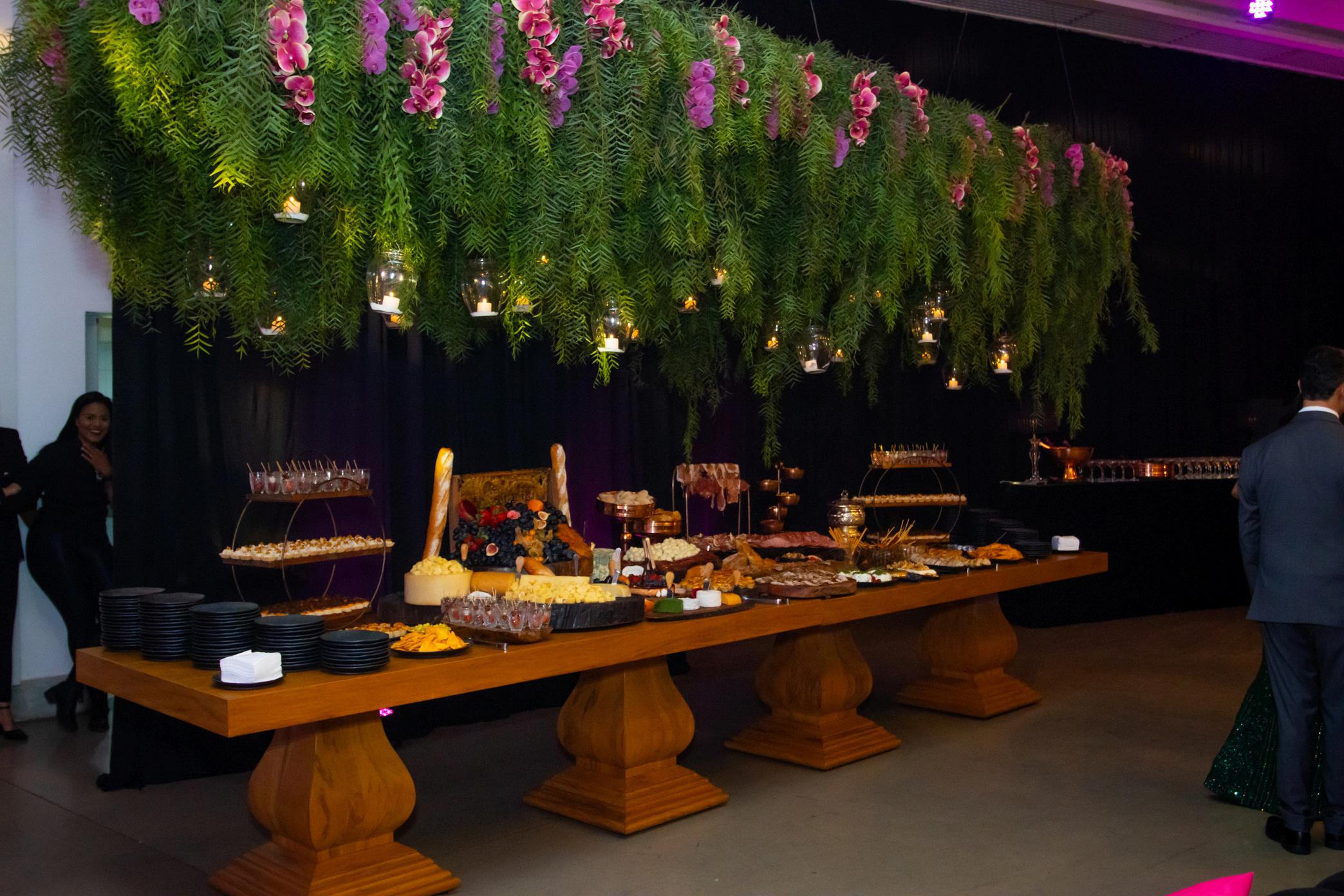 BELA DECORAÇÃO, AS MESAS DE BUFFET SERVIRAM UM MANJAR DOS DEUSES AOS CONVIDADOS.