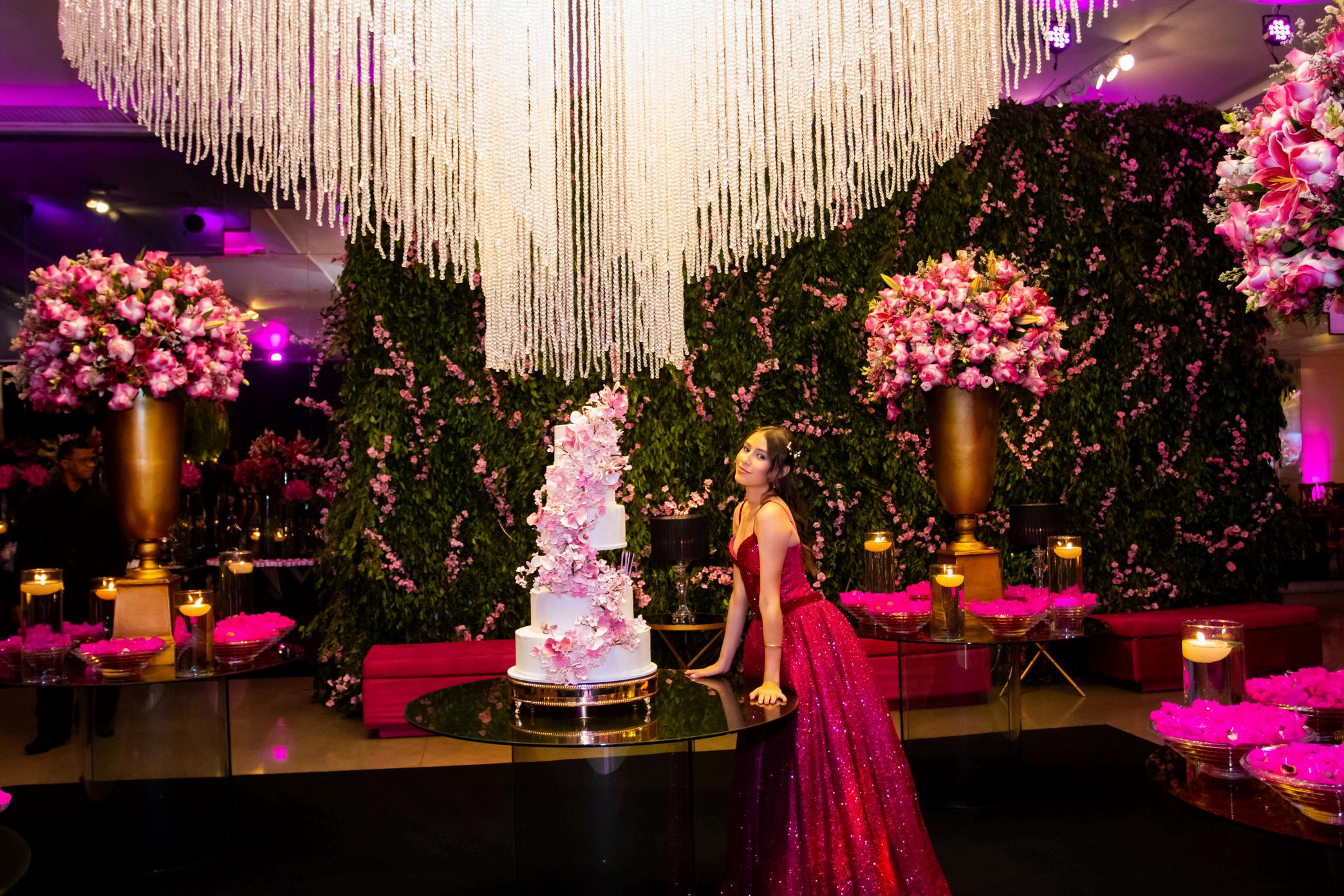 ALGUNS ÍTENS DA DECORAÇÃO, TIVERAM O TOM ROSA E DOURADO PARA DAR MAIS LEVEZA E JOVIALIDADE AO EVENTO, UMA VEZ QUE ESTAMOS FALANDO SOBRE FESTA DE QUINZE ANOS.