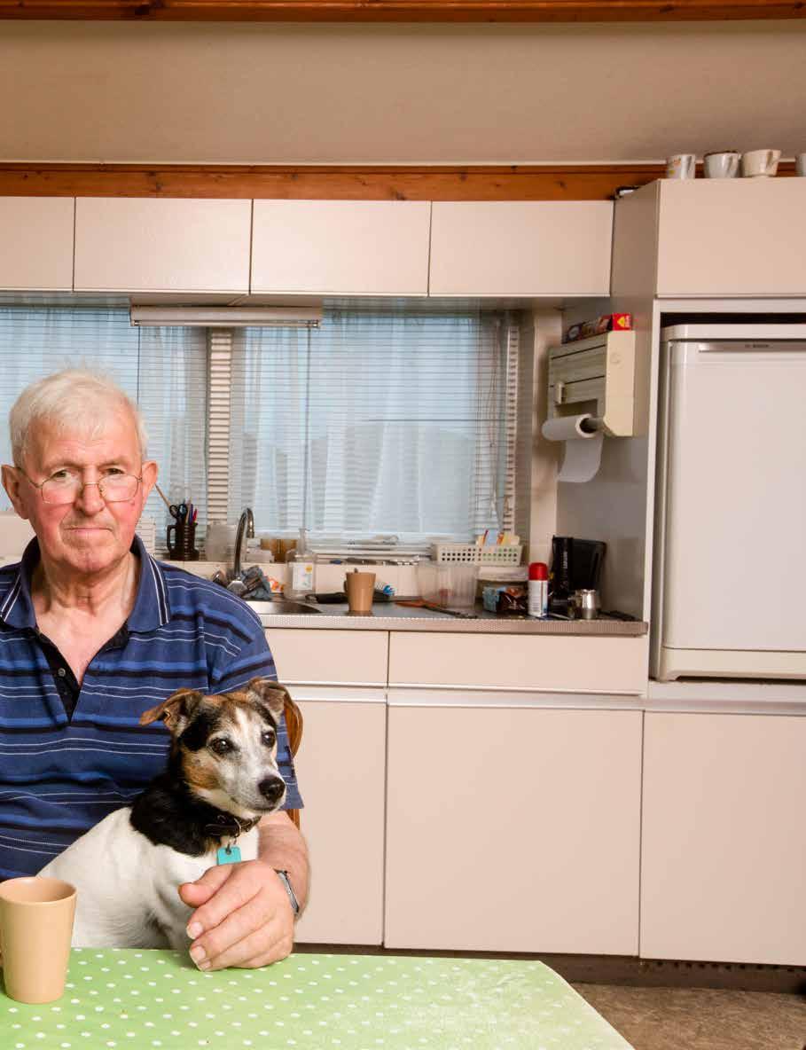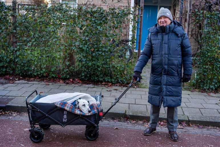 Klagen doe ik niet. Ik heb het geweldig getroffen hier. Mijn zoon woon in Lent en ik geniet volop van de kinderen van mijn dochter, die in Den Haag woont. En eerlijk is eerlijk: we hebben er mooie natuur bij gekregen en ook veel jonge bewoners. Ik wandel graag met Borre en er zijn genoeg mensen die een oogje in het zeil houden. De buren ook, ja. Hier voel je nog echt de saamhorigheid van vroeger. Toen Borre laatst weggelopen was, heeft een buurman geholpen om hem terug te krijgen. Fantastisch! Ja, ik heb het echt getroffen.”