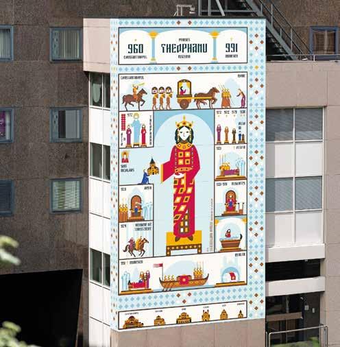 Als grafisch ontwerper maakt Gerco prach tige ontwerpen, die vaak geïnspireerd zijn op de natuur of de geschiedenis. Zijn meest in het oog springende ontwerp vindt u op de zijmuur van het casino bij de Waalkade, waar de Byzantijnse prinses Theophanu te zien is.