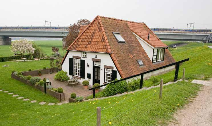 Maar hoe kwam hij eigenlijk terecht in Lent? (Officieel is het trouwens net over de grens met Bemmel.) Joop vertelt: ‘In 1970 ging ik werken voor de Radboud Universiteit. Mijn toenmalige vrouw en ik gingen wonen in Beek. De liefde voor dieren en (moes)tuinieren heb ik van mijn vader geërfd en al snel ging het dus weer kriebelen. Ik heb daar in Beek tegenover mijn huis nog een poging gewaagd op een hoekje land van een boer, maar toen hij het land uiteindelijk toch zelf nodig had, wist ik dat het tijd was om een huis met een grote tuin te zoeken.’ Uiteindelijk vond Joop in 1974 het huis aan de dijk waar hij nu nog steeds woont. Een collega op het labora torium wilde het verkopen. ‘Het was de tijd van de oliecrisis. De olie zou opraken en het was dus niet vanzelfsprekend om auto te kunnen blijven rijden. Daarom zochten we iets op fietsafstand van mijn werk. De locatie was ideaal. Het stokoude huis vertoonde echter wat gebreken. Zo lag het erg laag en hadden we veel last van kwelwater.’ Nadat Joop met vrouw en inmiddels twee kinderen een aantal jaren in het vochtige huis had gewoond, verhuisde het gezin naar een stacaravan achter in de tuin en werd het huis helemaal afgebroken.