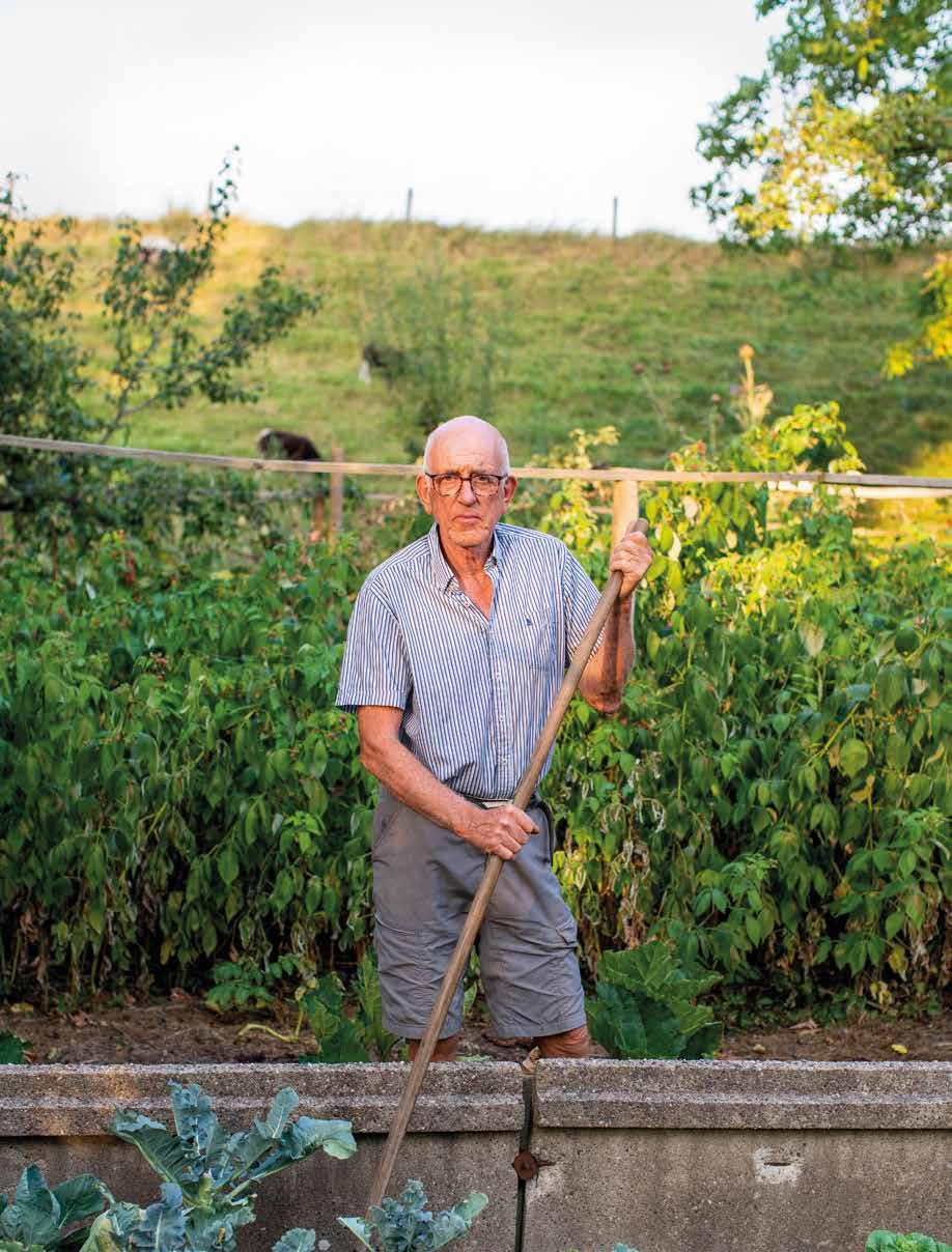 De grond werd een meter opgehoogd en een nieuw huis werd gebouwd. Zoveel mogelijk in de oude stijl. ‘Met de moestuin was ik al begonnen voordat het huis officieel van mij was. Dat was een flinke klus, driehonderd vierkante meter keiharde kleigrond omspitten. Maar het lukte, de moes tuin is nu nog op dezelfde plek.’ Het is 1980 als hij een advertentie ziet voor een bijencursus. Als de bijen uiteindelijk hun intrede doen op de boerderij, volgen al snel kippen en schapen. ‘Zo werd het weer het kleine bedrijfje dat het ooit was.’