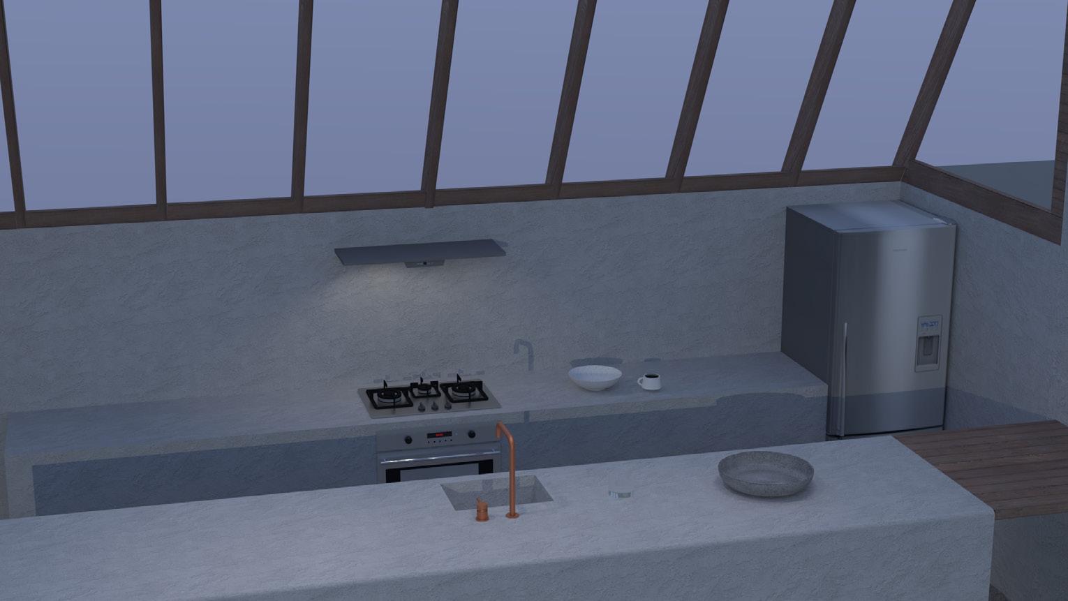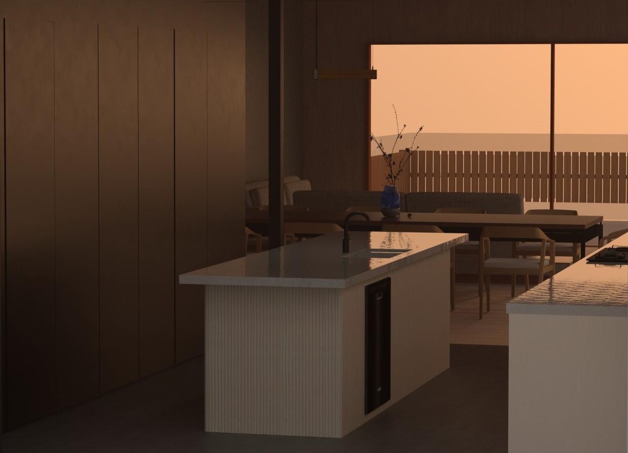 The small Building Design firm I work for does a lot of house extensions, working on the interior layout and external finishes. I presented this interior concept design for the renovation and extension of a family holiday home situated on a mountain overlooking the bay. The design was based on the overall feeling as well as some key tones and textures from a bunch of inspirational images from the client. The end result of my design used the contrast of light and dark with the use of elegant neutral tones. The home is surrounded with nature therefore it was important that I used natural materials such as copper cladding for the kitchen cabinets, contrasting with a soft, natural unpolished look for the timber. Through my concept design I intended to encapsulate a serene and tranquil environment, a home away from home to reset, contemplate, and enjoy the simple pleasures of life, including wonderful bay views.