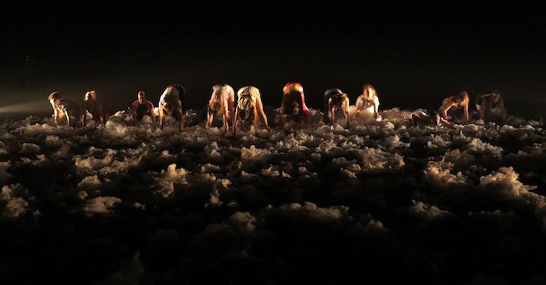 As part of my Masters course I had the opportunity to design the set for CRUSH by Stephanie Lake, performed by VCA graduating dance students. The piece was shown as two parts with two different sets. The process of my design consisted of watching dance rehearsals and taking notes of words and images that came to mind. For example Part One: order, organisation, symmetry, pulse. Part Two: cacophony, wildness, humanity, fray. This is similar to my usual design process which involves note-taking, mind maps and quick sketches. For Part One my design started with my proposition for the dancers to brush their fingernails against corrugated cardboard which created a captivating sound. The set for Part Two was made predominately from upholstery stuffing. I have a special interest in texture and enjoy designing elements which can be interacted with or elements which the participants or performers can immerse themselves in, rather than design with the sole purpose of decoration.