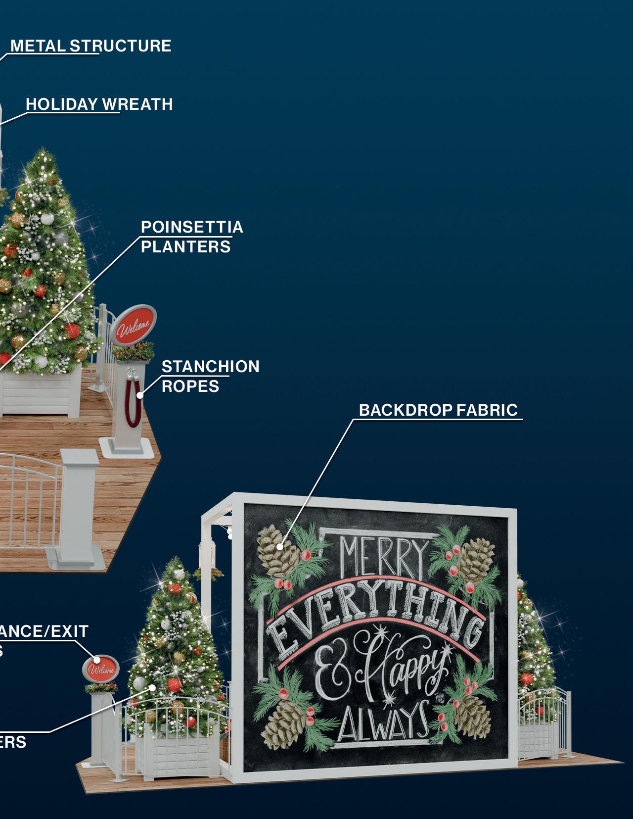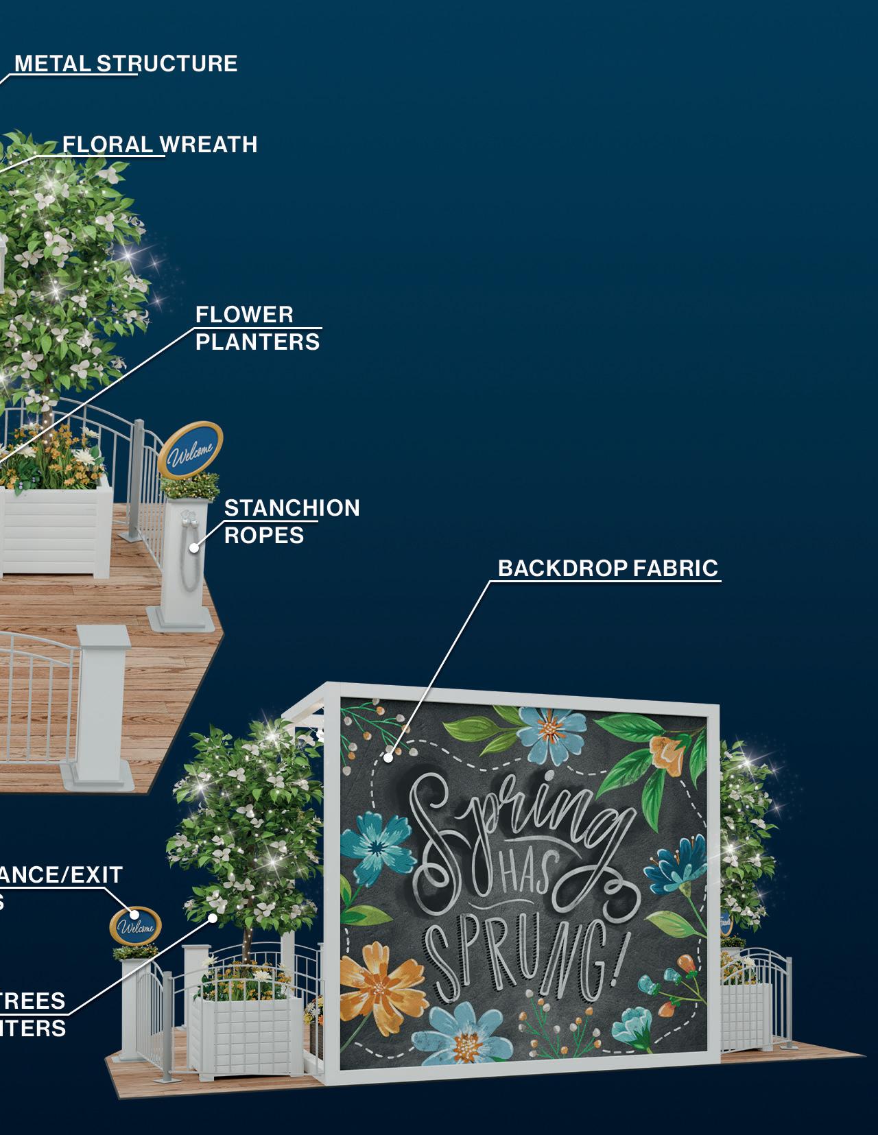 Enjoy low-maintenance styling with interchangeable, customizable backdrops, designed to adapt to your seasonal themes and brand identity.