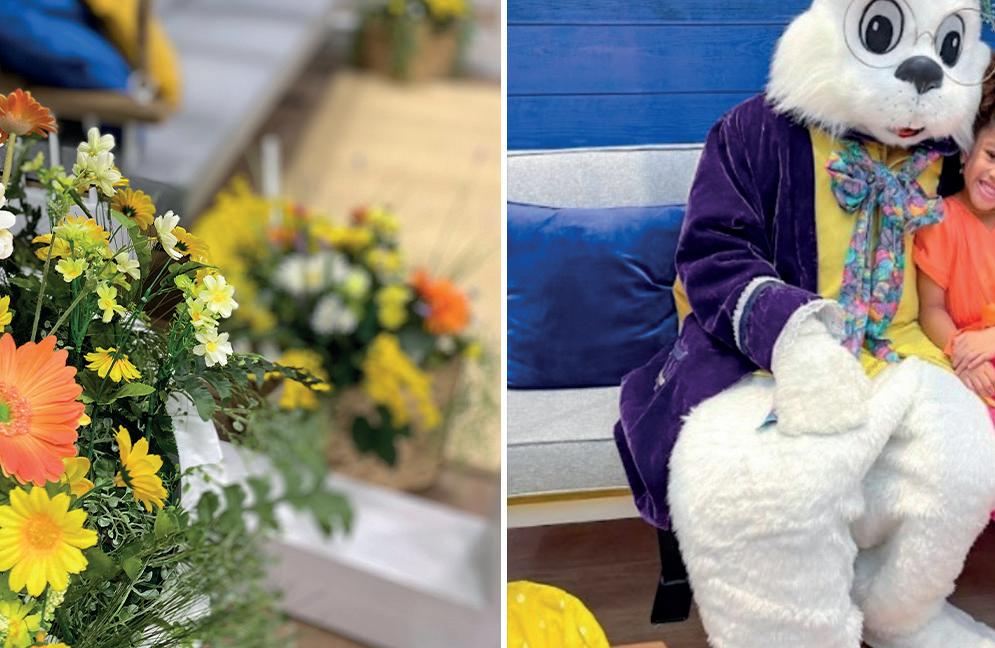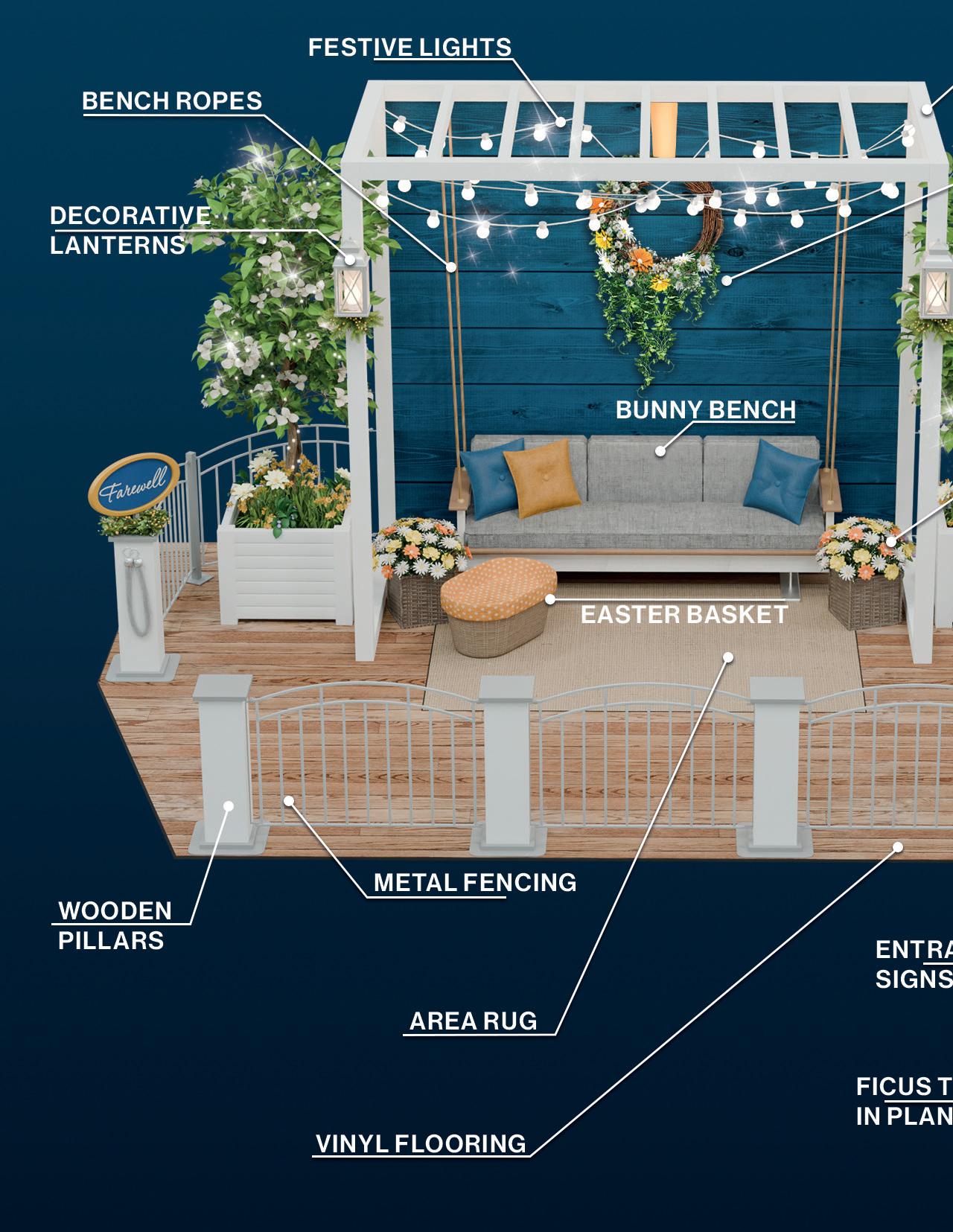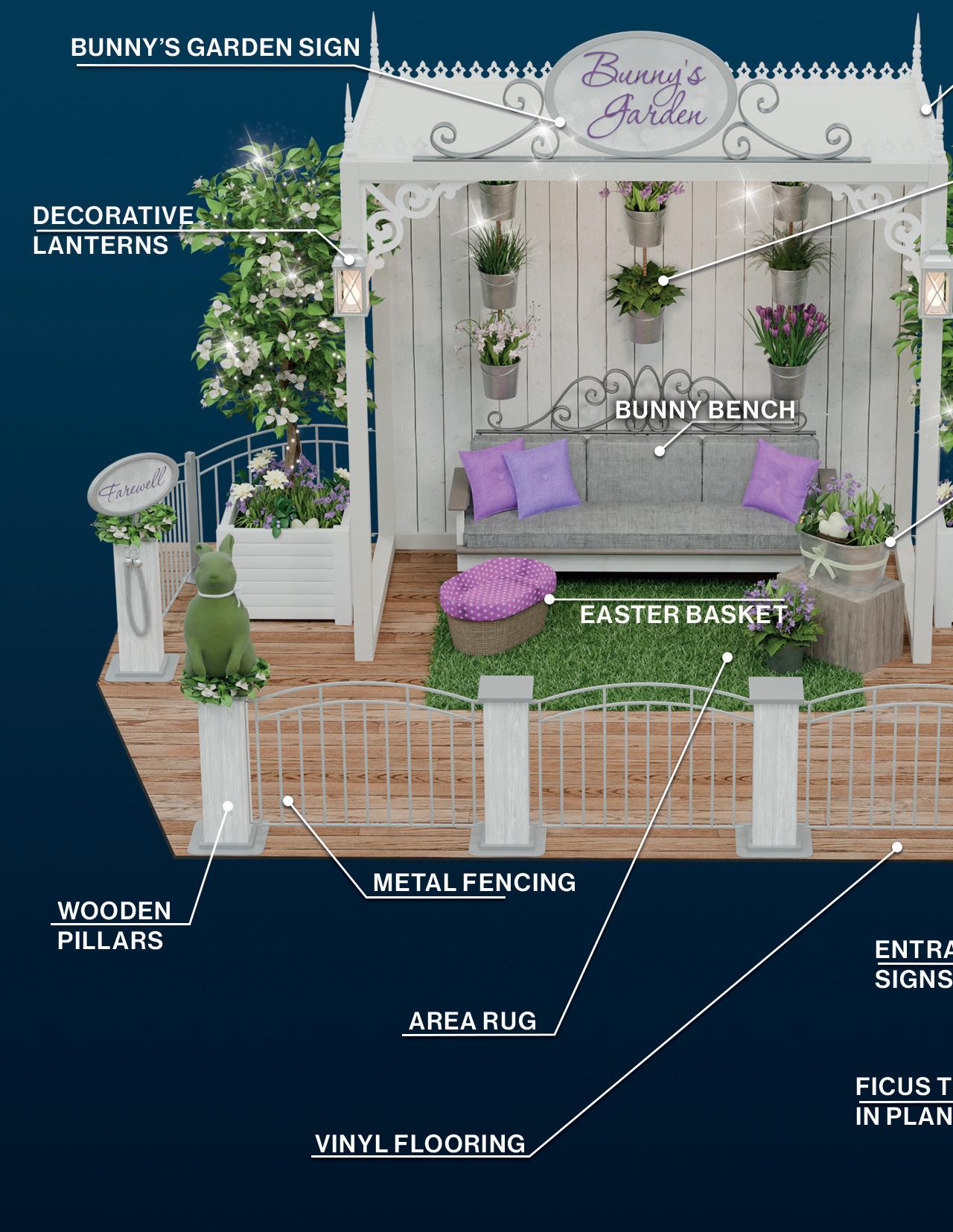 Perfect for capturing memorable photos with the Easter Bunny, this beautifully decorated cottage reflects the soft elegance of the season through its delicately crafted eaves and elegant details.
