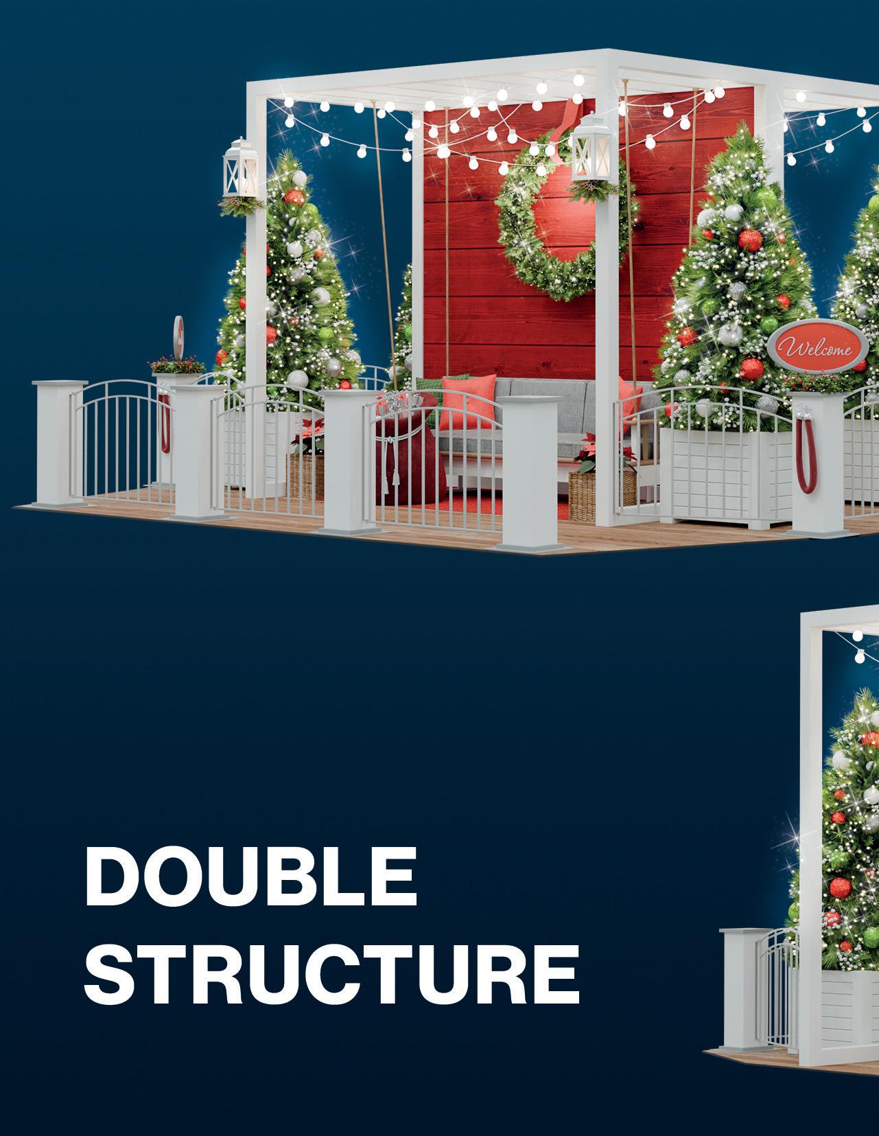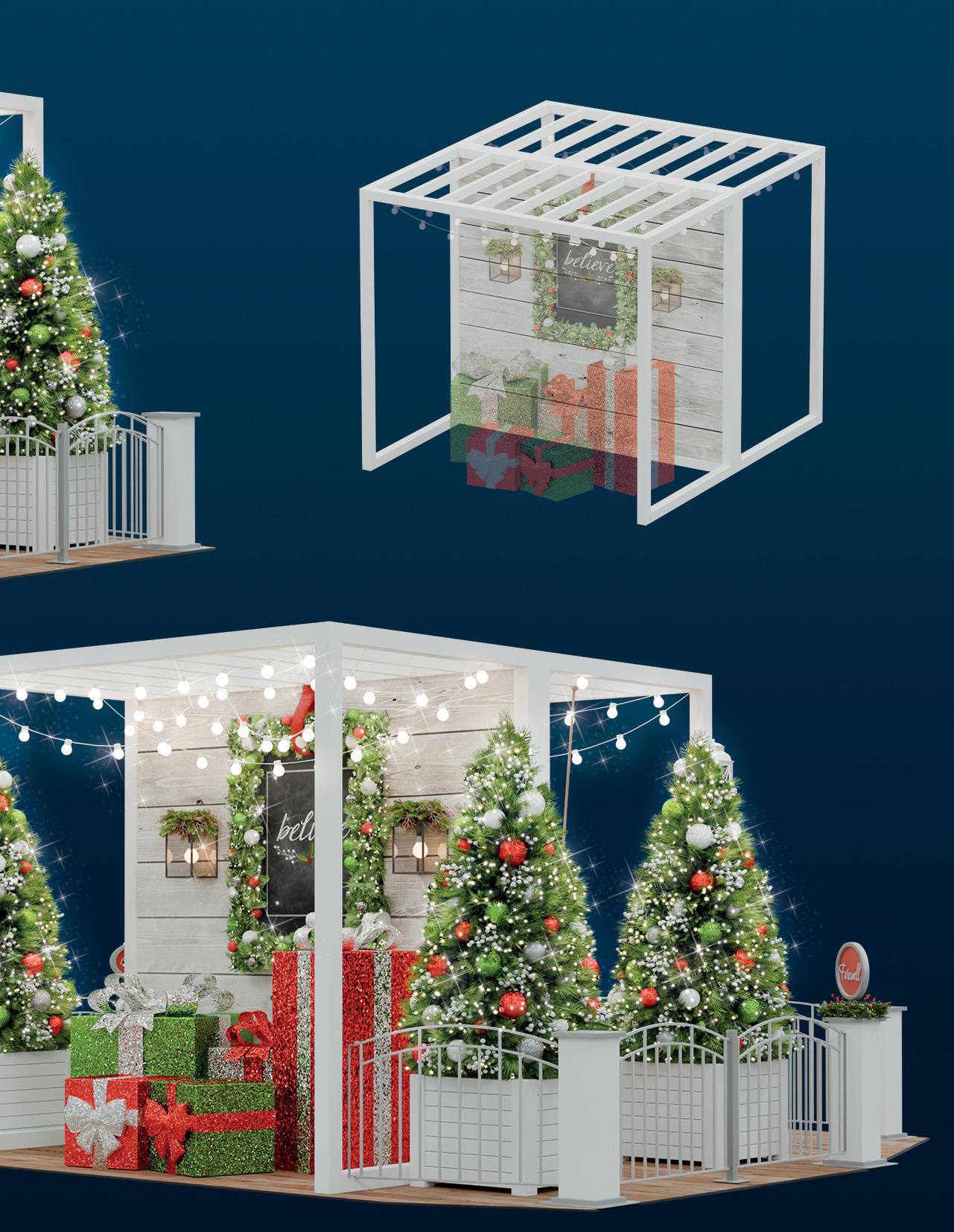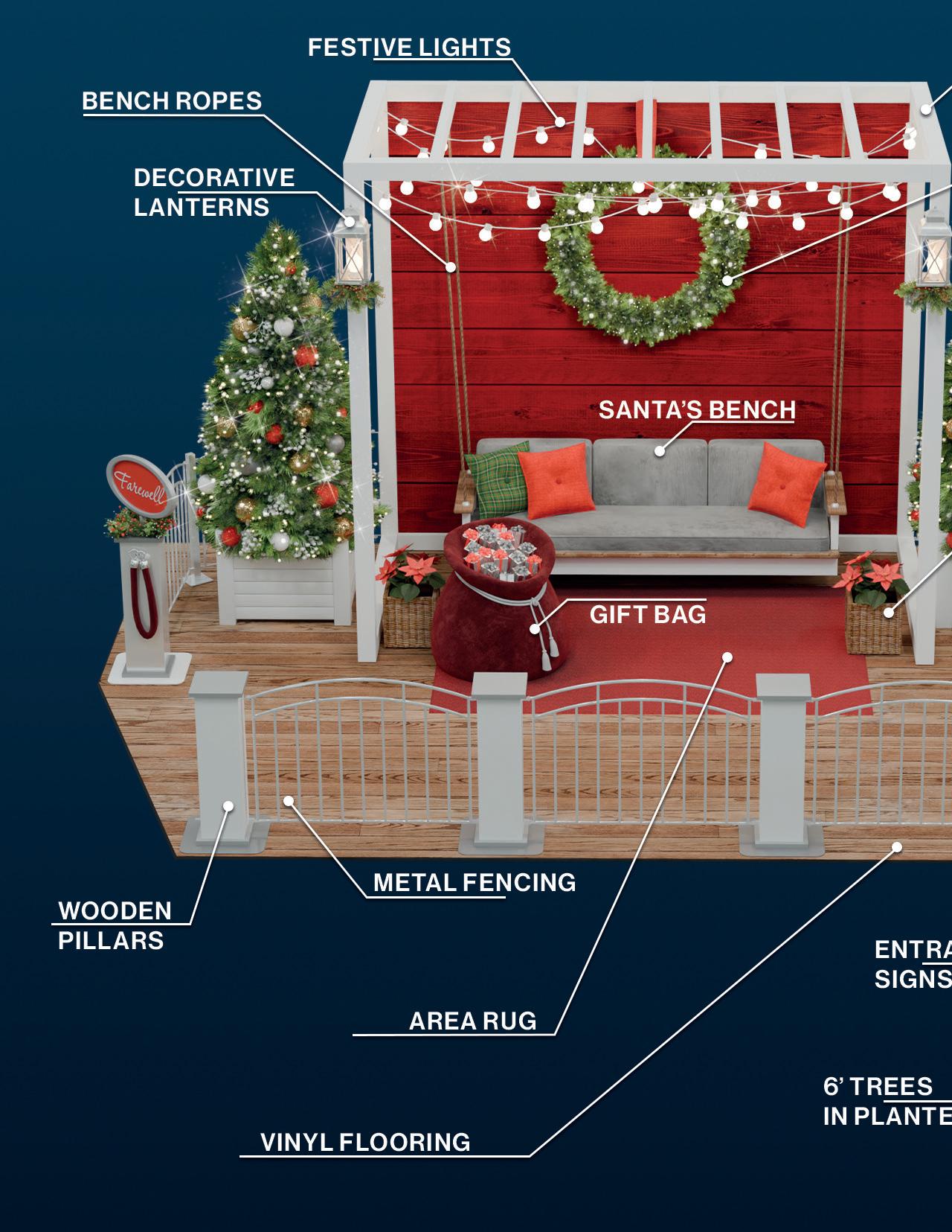 Create a full 360° experience by placing two gazebos back-to-back, doubling the visibility and guest interaction. One side becomes an inviting photo opportunity, while the other transforms into the perfect Santa set, ideal for maximizing engagement during festive events.