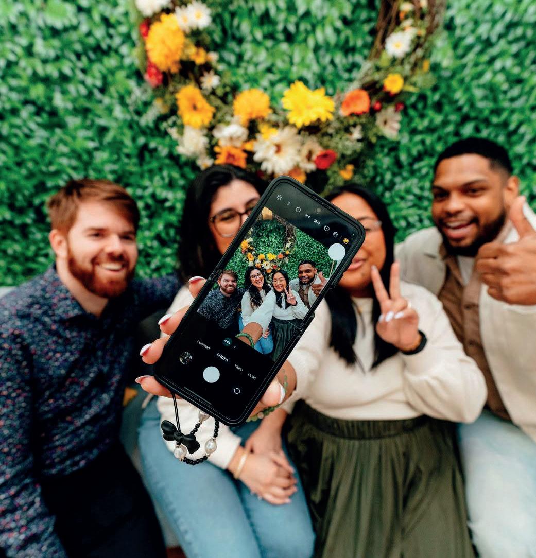 create a joyful scene where guests can pose for bright, cheerful photos.