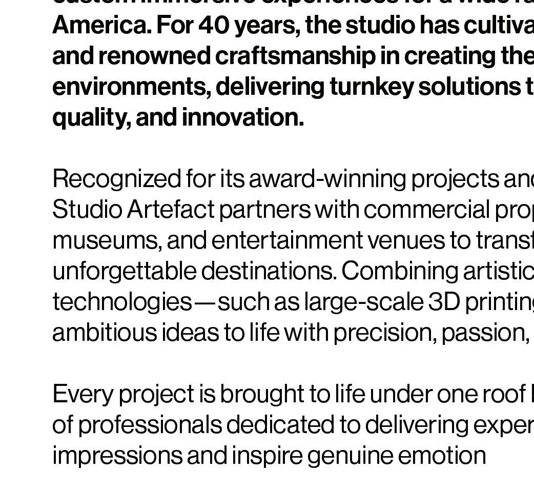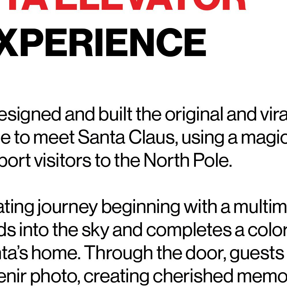 We consider our clients as partners and work closely with them to develop the content of each project. Whether it be for a commercial property, a themed event or a larger-thanlife brand activation, our team has the expertise to bring any idea to life.