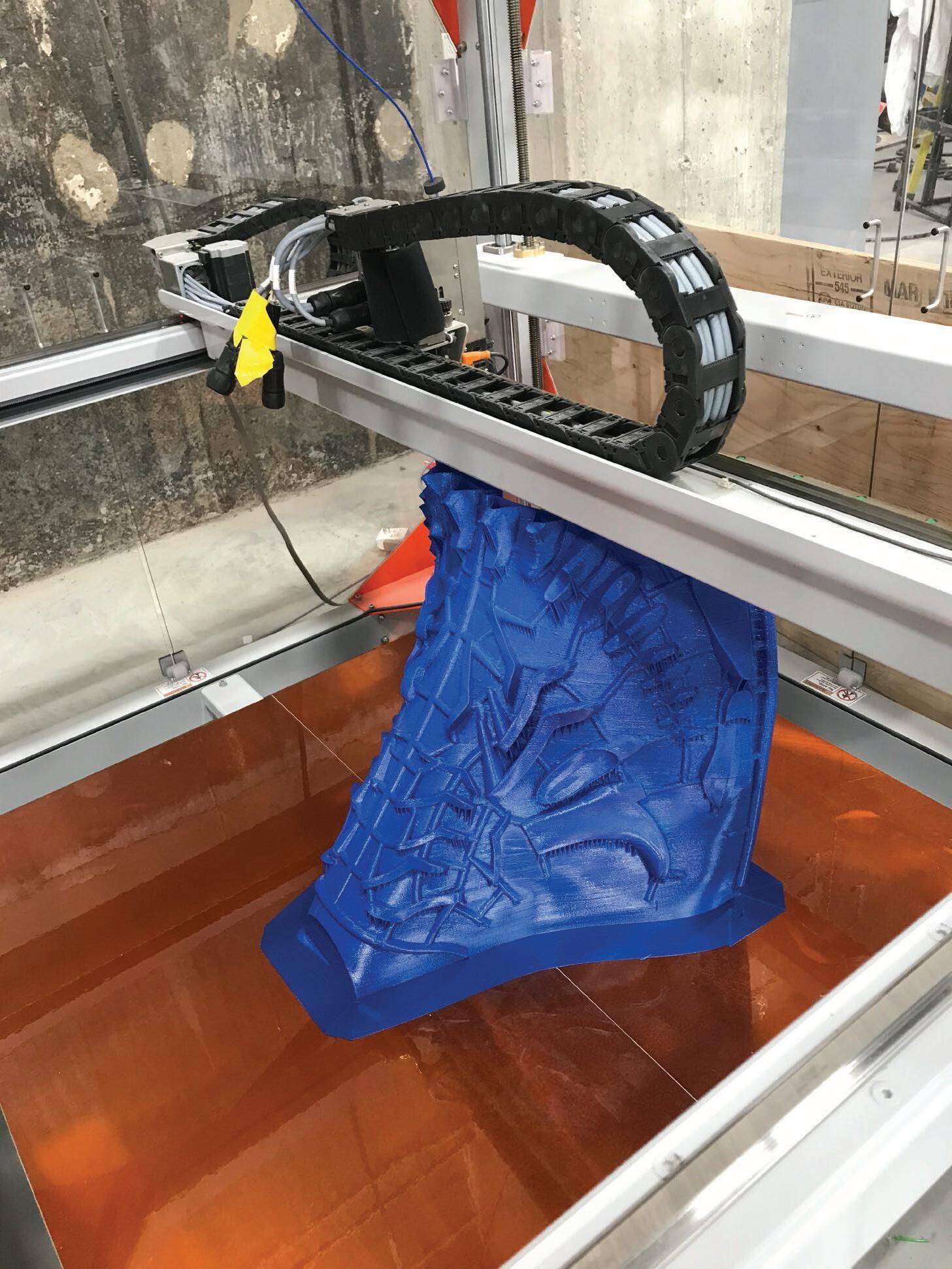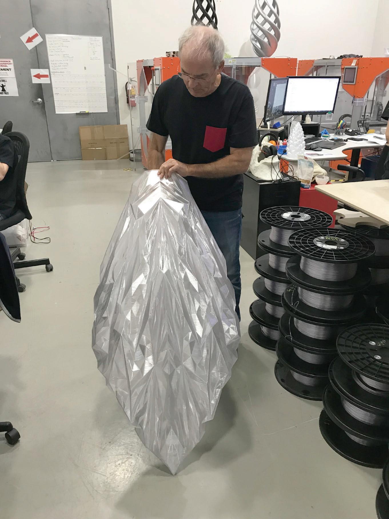 It took several weeks of conception and planning to create this iconic piece. Atop its 34', it is the largest illuminated 3D printed tree.