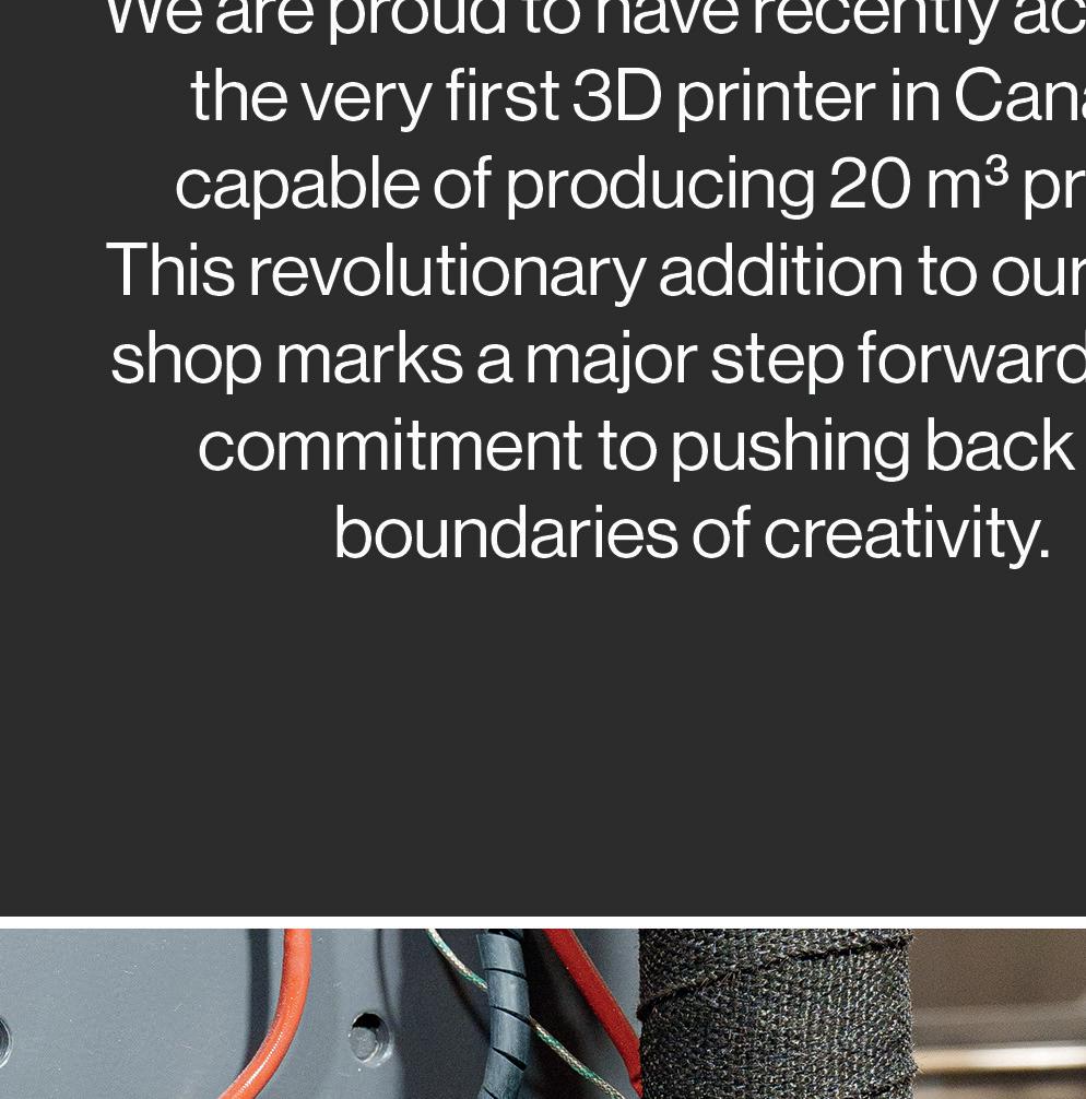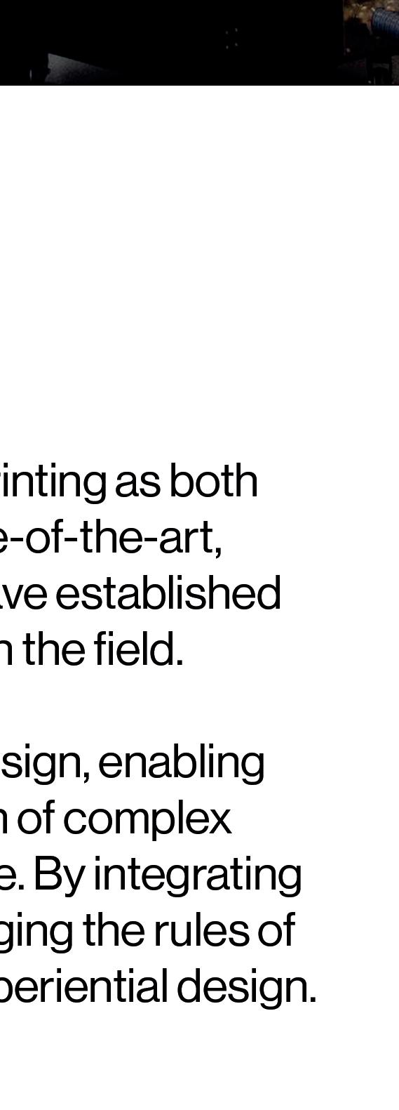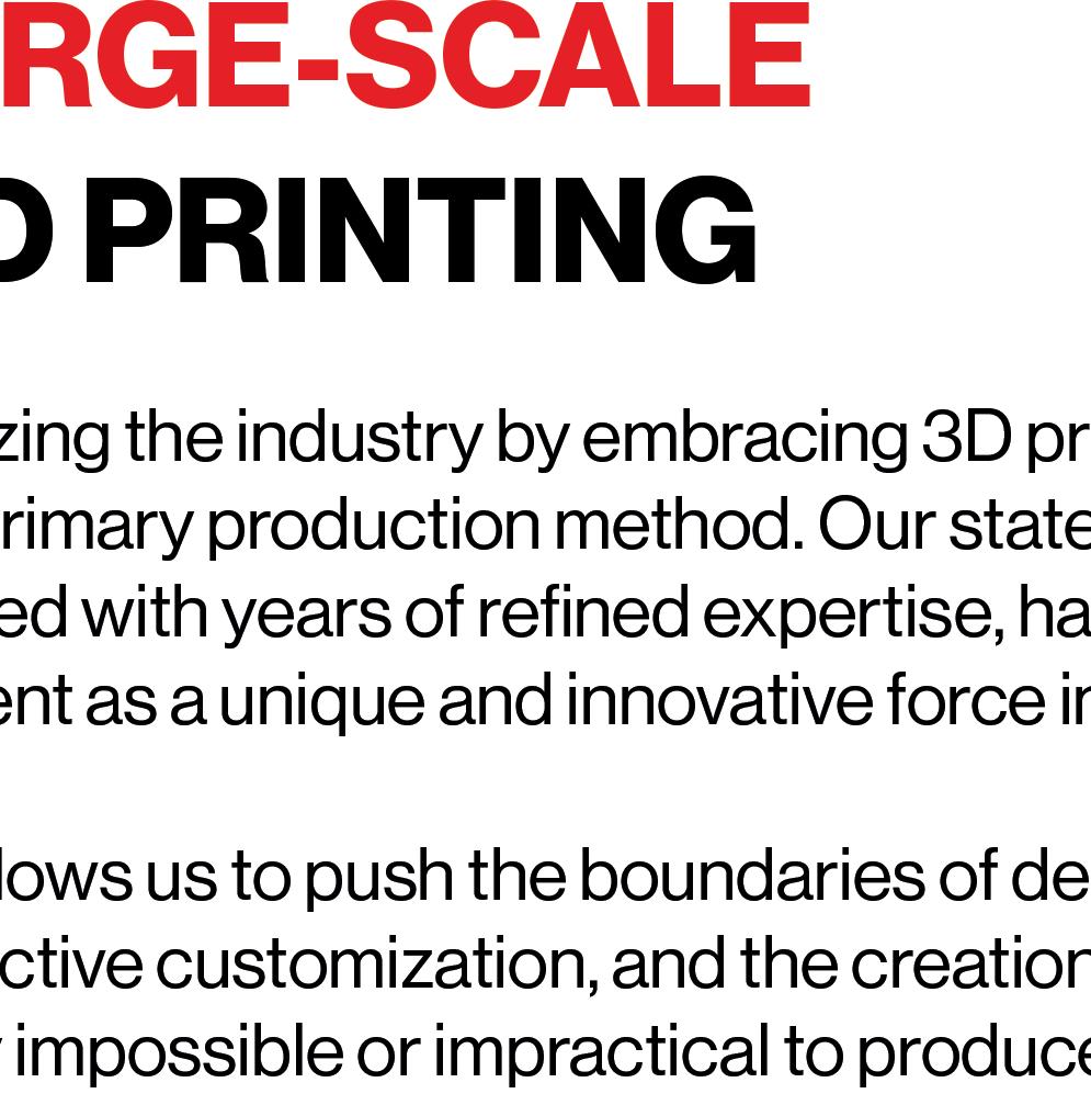Our robust 3D printing infrastructure, comprising 14 advanced printers, including six capable of producing objects up to 1 cubic meter and one industrial-grade printer handling volumes as large as 20 cubic meters, empowers us to significantly scale production and drive innovation in manufacturing.