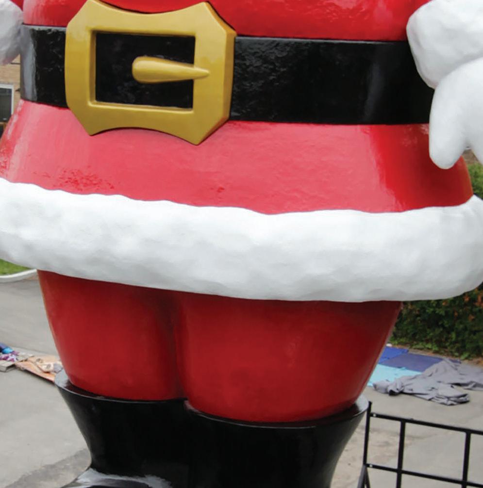 Reproduction of a vintage 1960 giant Santa Claus. Design, engineering, manufacturing and installation of a 38' tall fiberglass structure.
