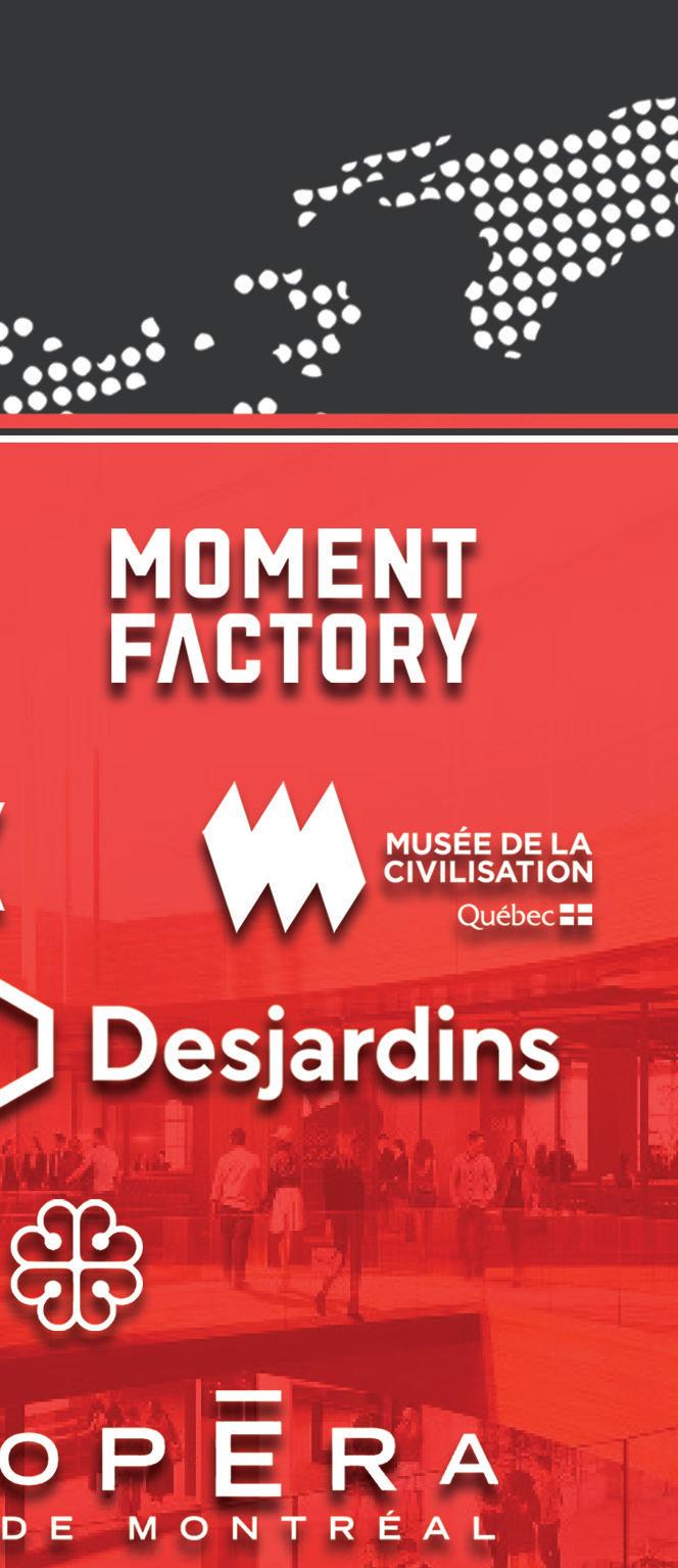 Cette expertise unique a attiré des partenaires de renommée mondiale tels que Moment Factory et Cirque du Soleil, qui comptent sur nous pour des pièces extraordinaires et uniques en leur genre.
