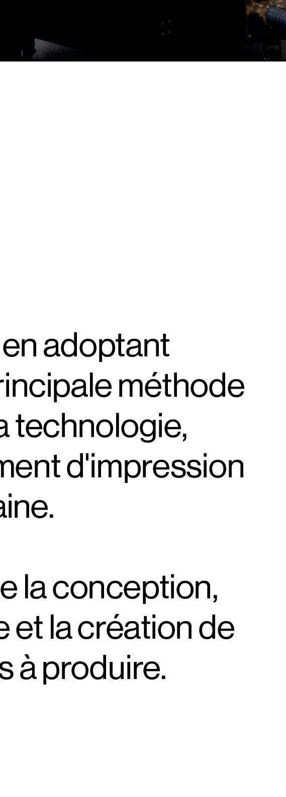 Notre approche pionnière est illustrée par notre département d’impression 3D à la pointe de la technologie, qui s’intègre parfaitement à nos processus de conception et de production. Cette technologie nous permet de créer des pièces et des concepts sans précédent, repoussant les limites de la fabrication traditionnelle.