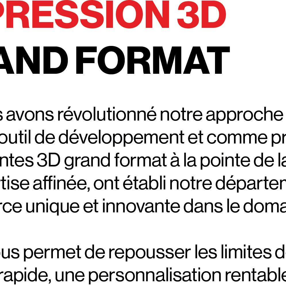 3D, nous redéfinissons les possibilités créatives de la production à grande échelle. Équipés d'imprimantes de pointe capables de réaliser des pièces jusqu'à 20 mètres cubes, nous employons une technologie de pointe pour donner vie à des designs innovants.