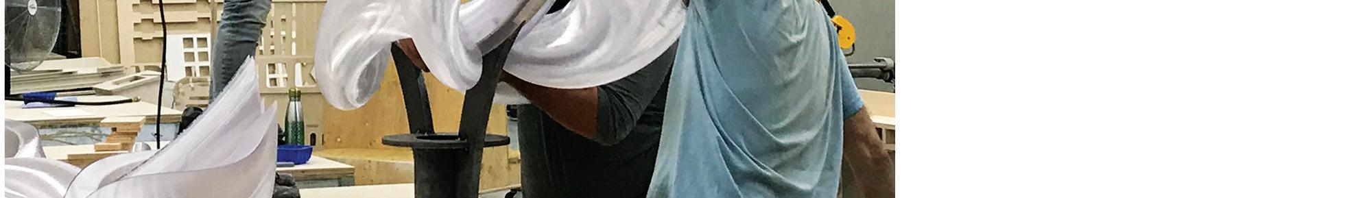Avoir notre propre département de couture nous évite de devoir nous tourner vers la sous-traitance et nous permet de réaliser nous-mêmes des éléments essentiels à nos décors.